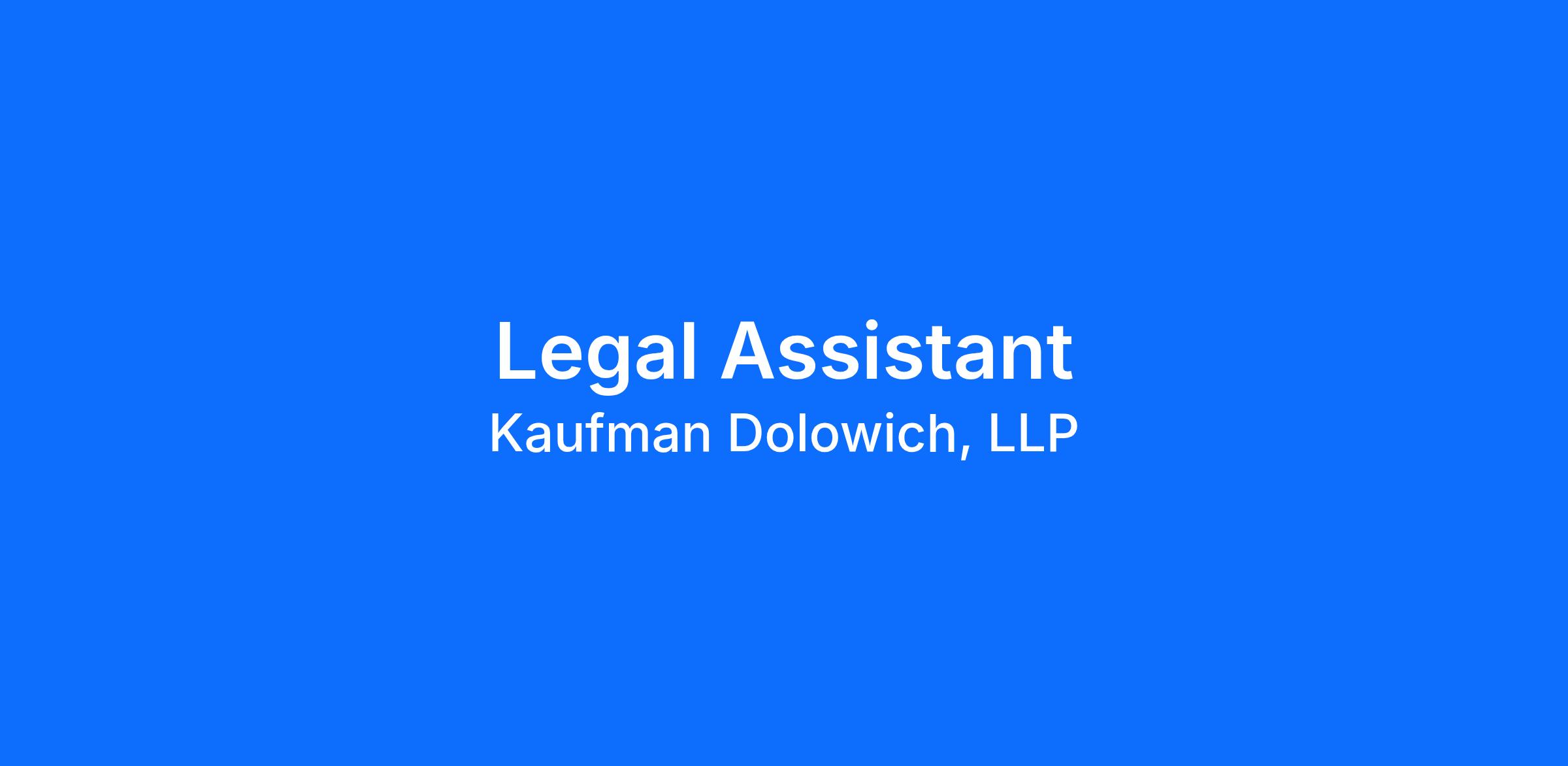 Kaufman Dolowich, recognized by U.S. News in their list of “Best Companies to Work For - Law Firms,” is seeking a Legal Assistant with 3+ years of litigation experience. Our San Francisco Legal Support Department is comprised of highly skilled and motivated individuals, who are seeking a dynamic self-starter to join our growing team!