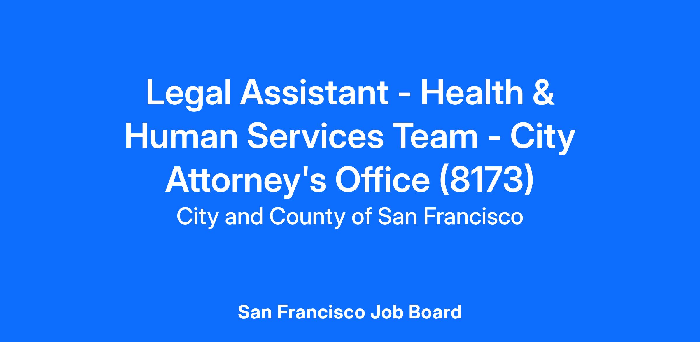 The San Francisco City Attorney’s Office is looking for a qualified and motivated legal assistant to join its Health & Human Services Team.