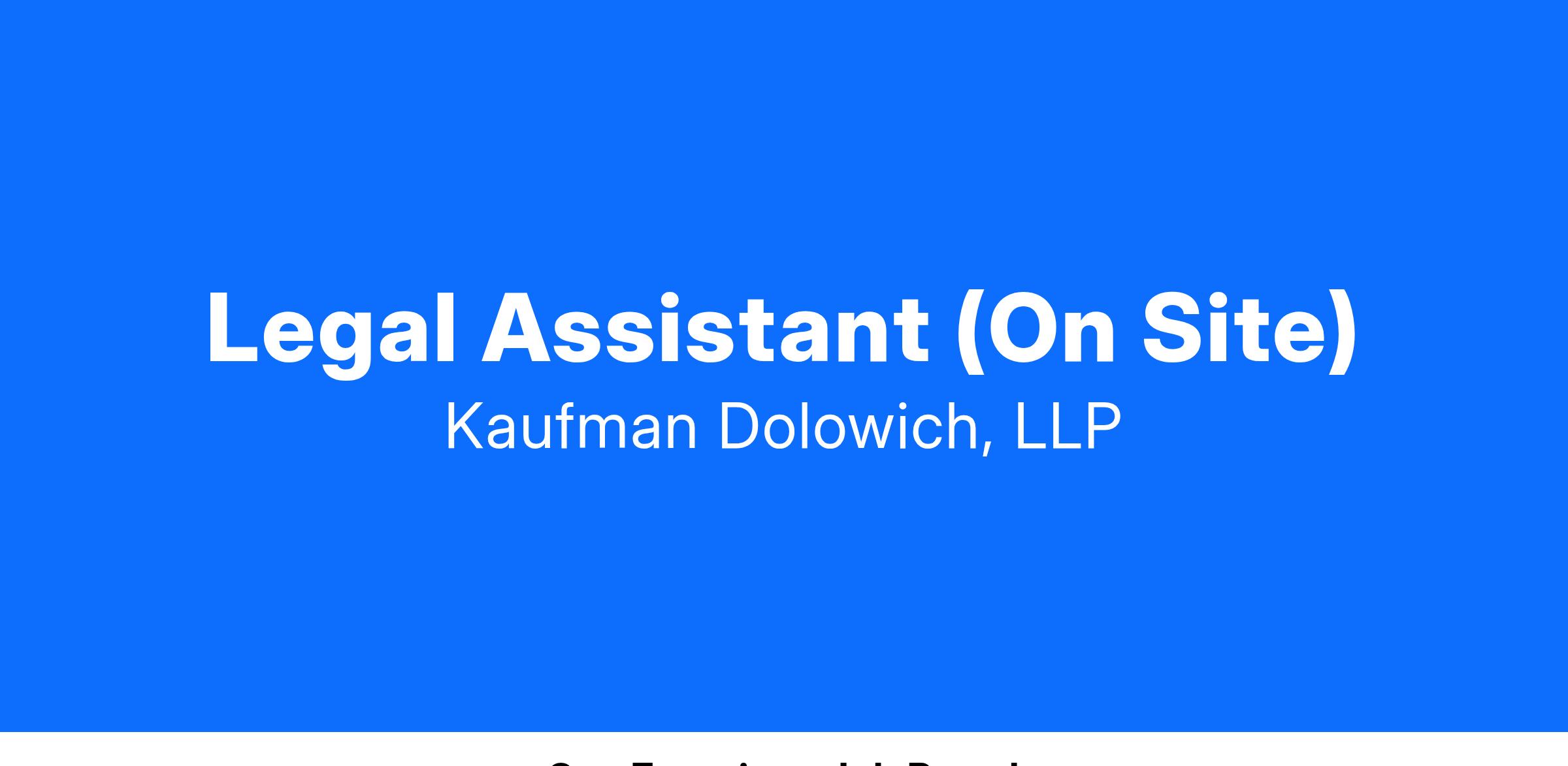 Kaufman Dolowich, an AV-rated® firm designated one of the “Best Companies to Work For” is seeking a Legal Assistant with 2+ years of experience in a similar position. This role will be on site and based out of our San Francisco Office. Our Legal Support Department is comprised of highly skilled and motivated individuals, who are seeking a dynamic self-starter to join their growing team!