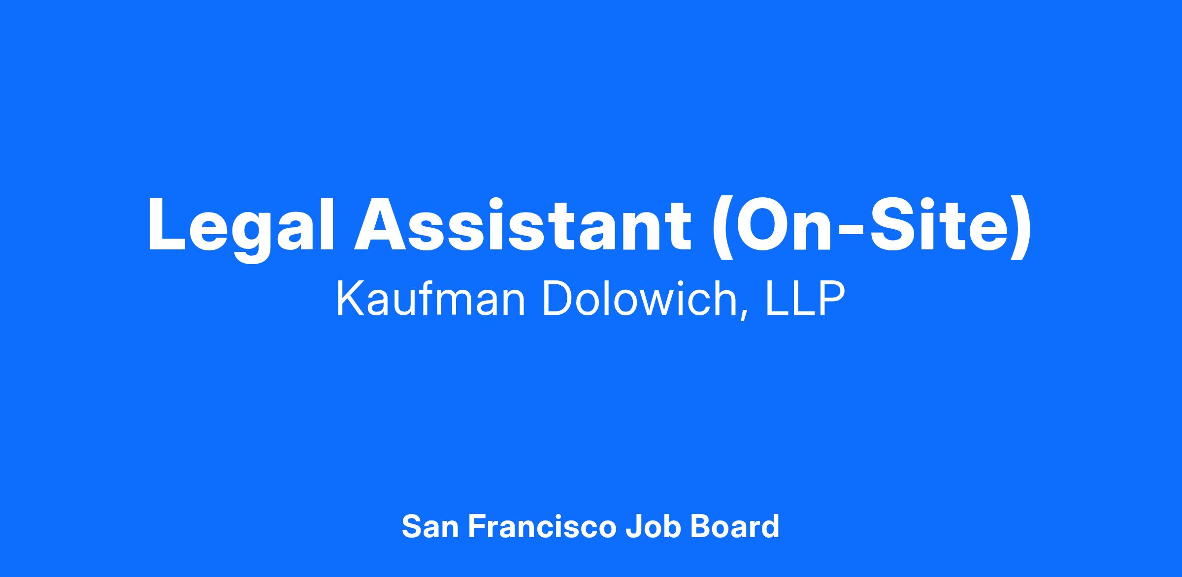Kaufman Dolowich, an AV-rated® firm designated one of the “Best Companies to Work For” is seeking a Legal Assistant with 2+ years of experience in a similar position. This role will be on site and based out of our San Francisco Office. Our Legal Support Department is comprised of highly skilled and motivated individuals, who are seeking a dynamic self-starter to join their growing team!