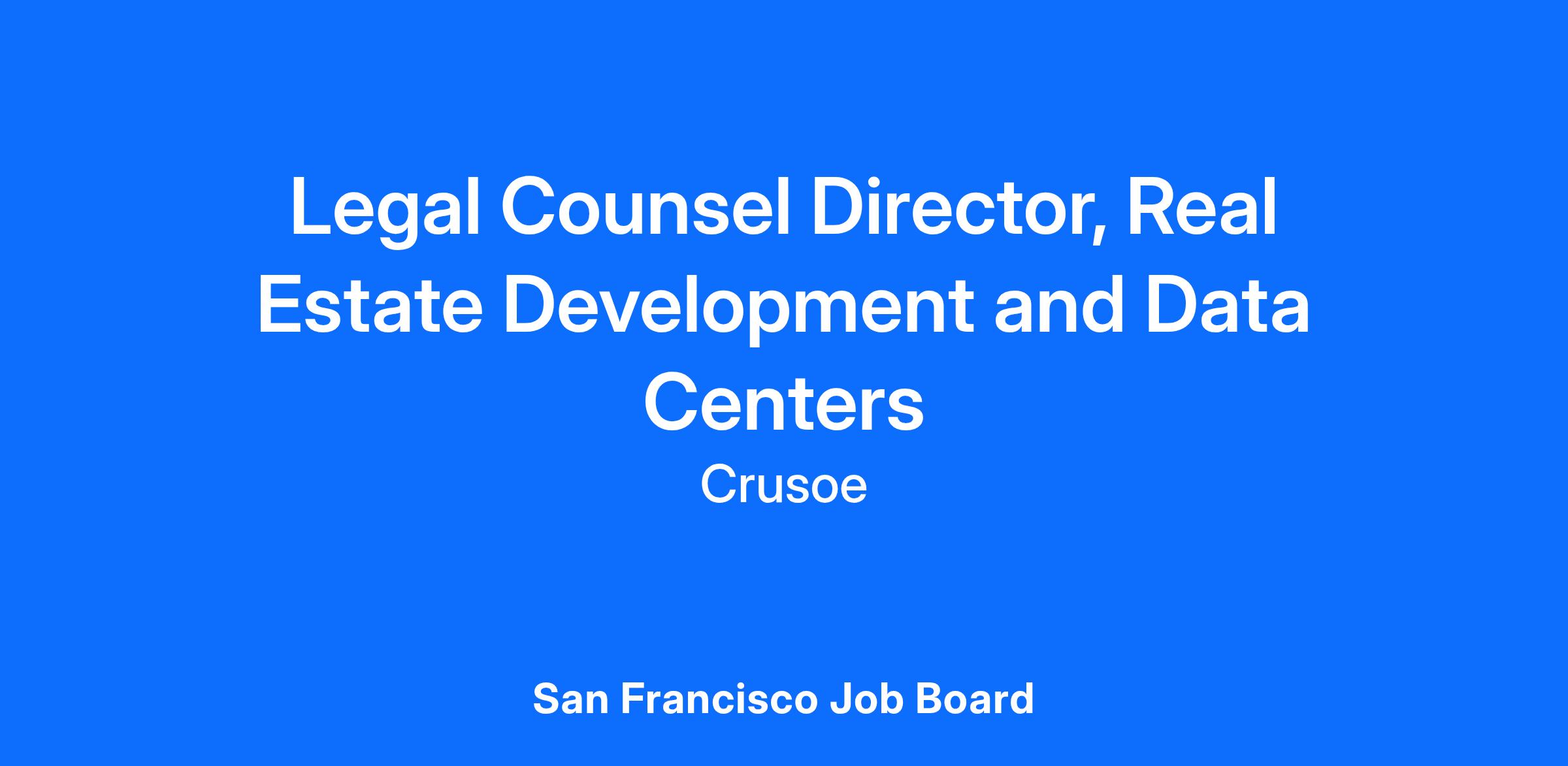 The Legal Counsel Director – Real Estate Development and Data Centers will play a key role in supporting the company’s large-scale real estate developments and project financings. Reporting directly to the Assistant General Counsel - Real Estate Development & Data Centers, the Legal Counsel will lead contract drafting,negotiation, and execution of real estate acquisition, power matters and project finance transactions and while working closely with cross-functional stakeholders to ensure timely and strategic legal support across all of Crusoe’s data center development projects.