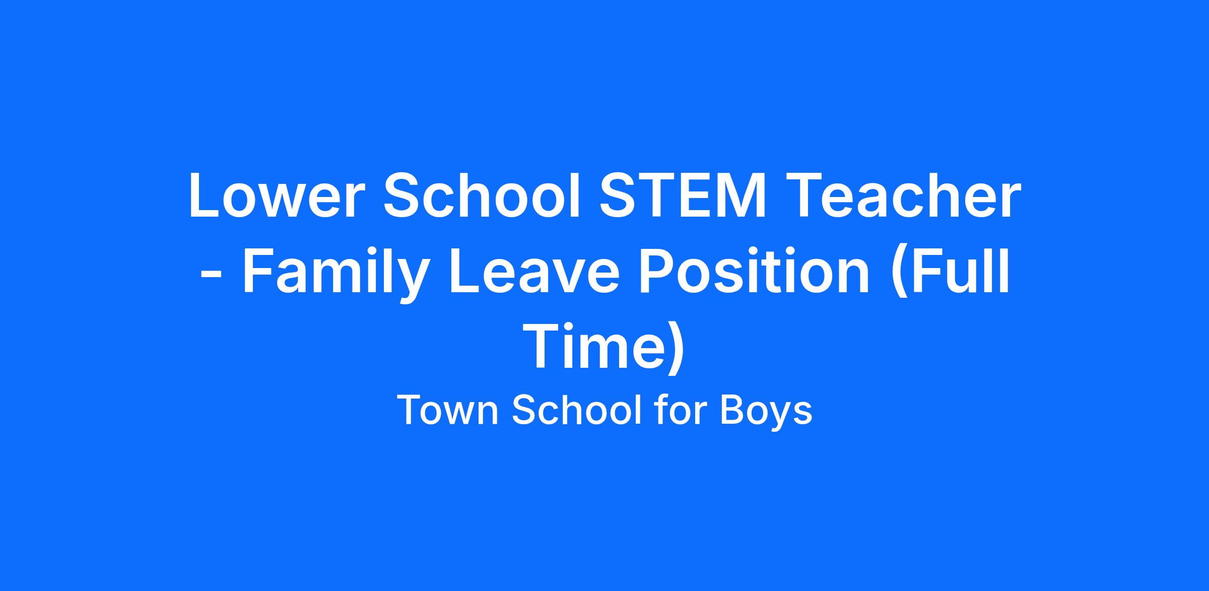 Town School is seeking a full-time Lower School STEM Teacher to work with students in Kindergarten through 2nd grade. An ideal candidate would promote critical thinking and problem-solving through daily activities and project-based learning. There are weekly faculty and department meetings, as well as weekly lunch and recess duty obligations. Faculty are expected to take an active role in the school by contributing to committees, chaperoning field trips, and attending student performances and athletic events.