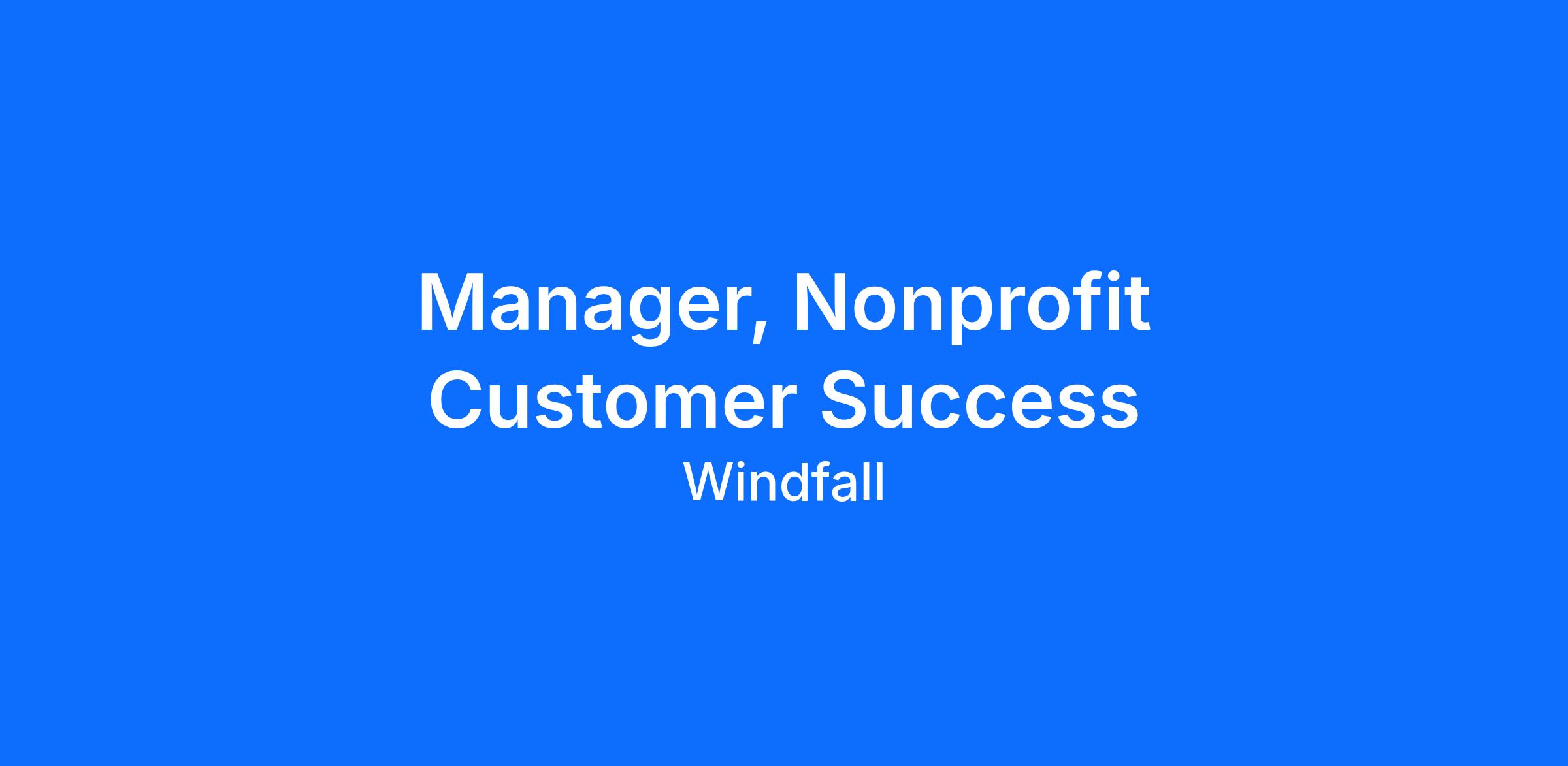 As a Manager of Nonprofit Customer Success, you will lead a team of Customer Success Managers (CSMs) focused on scaling the nonprofit vertical within our business. You will own a set of accounts, manage and grow a team, and build systems and processes to help scale the customer success organization at Windfall in the years to come.