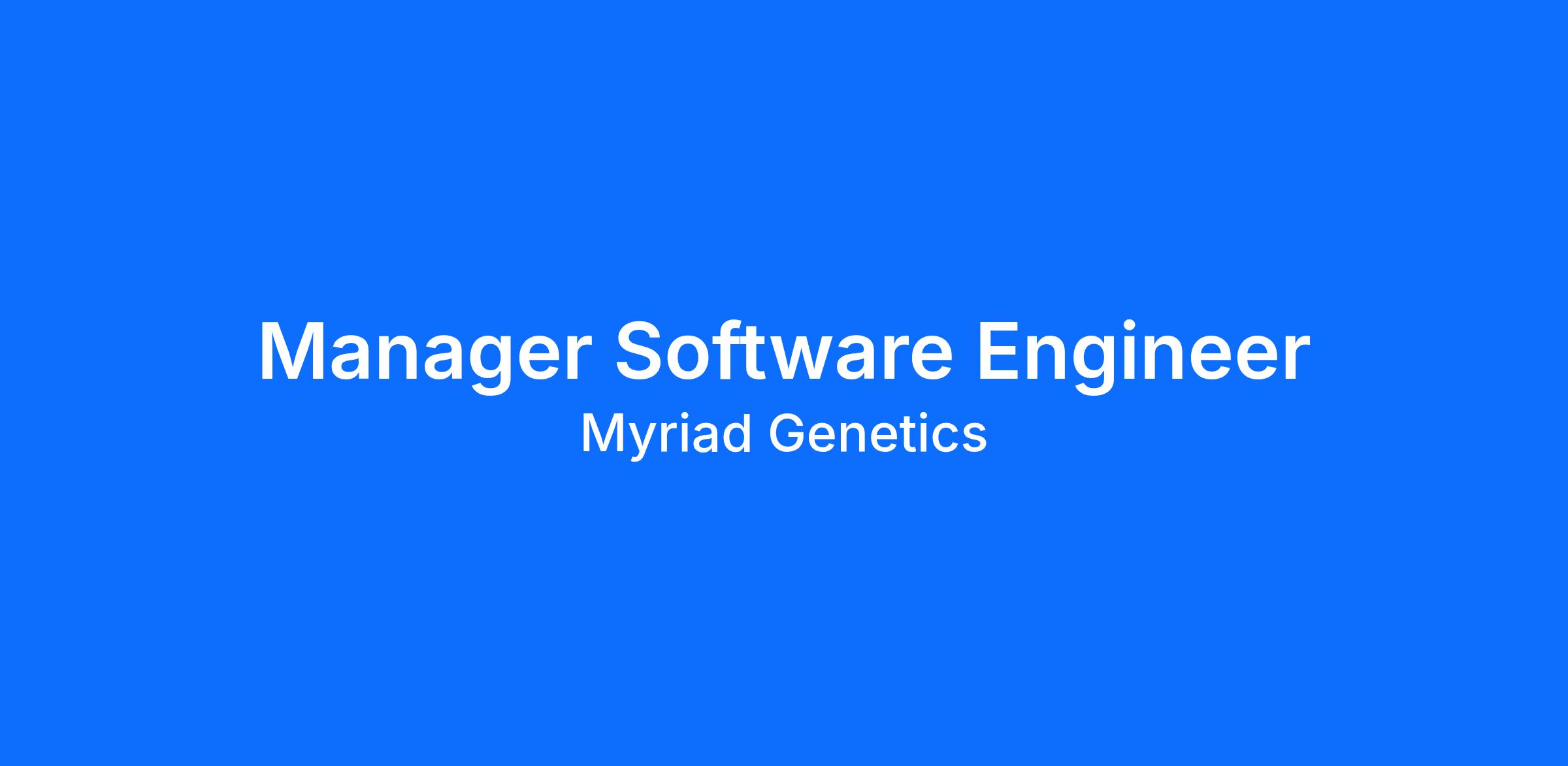 We need a Software Engineering Manager to help Myriad Genetics, Inc. deliver innovative products that allow patients to make life-changing decisions. Our genetic screening and testing help to provide actionable insights to empower people to make critical and timely healthcare decisions by using molecular diagnostic tests for hereditary cancer, urological cancer, depression, and other diseases. We are excited about the future and remain committed to advancing the science of personalized medicine as we develop more products to address unmet medical needs.