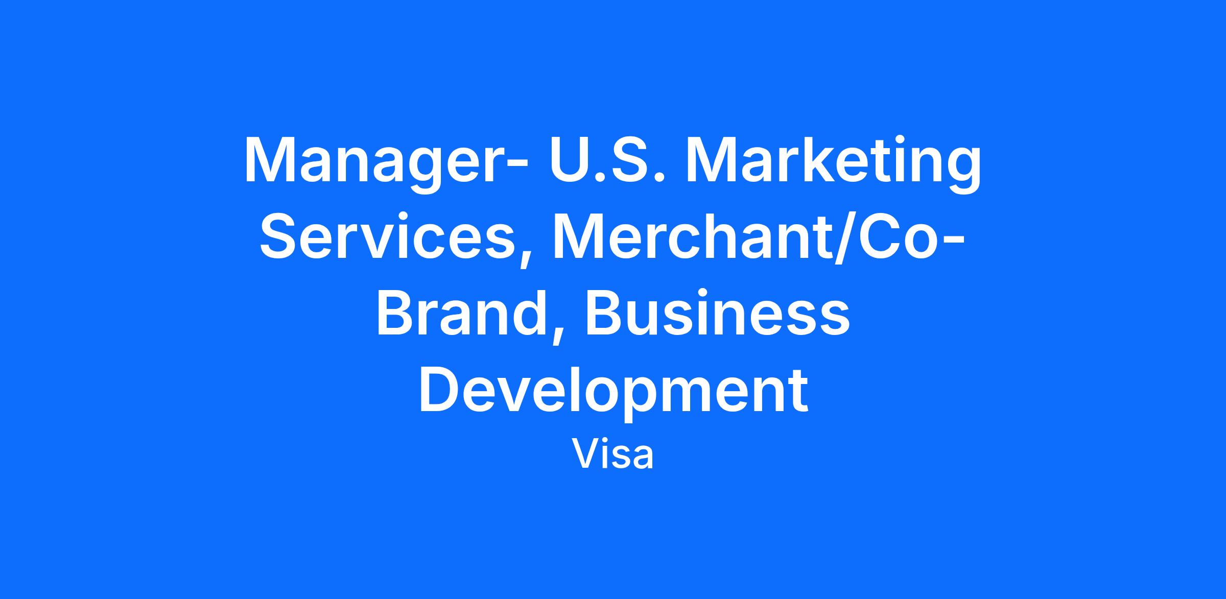 This is an exciting time to join Visa’s North America Marketing Services team. We are evolving how we partner with merchant and co-brand clients—moving to a more proactive, results‑driven approach that deepens relationships and delivers measurable impact. Our team leverages Visa’s insights, platforms, and sponsorship assets to help clients build competitive advantage and stronger customer connections.