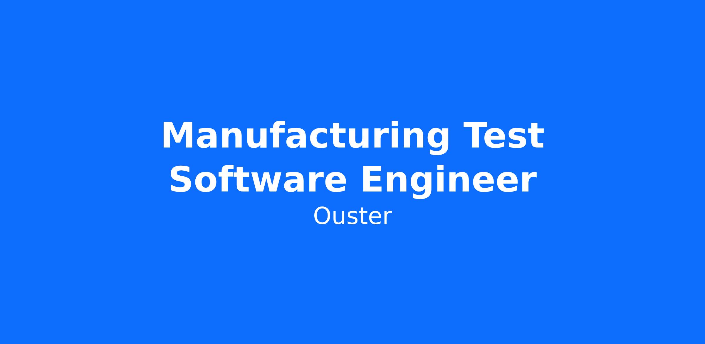 At Ouster, we build sensors and tools for engineers, roboticists, and researchers, so they can make the world safer and more efficient. We've transformed LIDAR from an analog device with thousands of components to an elegant digital device powered by one chip-scale laser array and one CMOS sensor. The result is a full range of high-resolution LIDAR sensors that deliver superior imaging at a dramatically lower price. Our advanced sensor hardware and vision algorithms are used in autonomous cars, robotics, industrial, and smart infrastructure applications (among many others). If you’re motivated by solving big problems, we’re hiring key roles across the company and need your help!Our team is looking for a passionate, self-motivated Manufacturing Test Software Engineer with strong in-depth knowledge of test software and product engineering. In this position, you will be a member of the Test team at Ouster’s R&D / Pilot facility in San Francisco, California. You will work closely with R&D and Operations to support LiDAR products by using your skills and experience to identify and facilitate the improvement of manufacturing tests and processes.