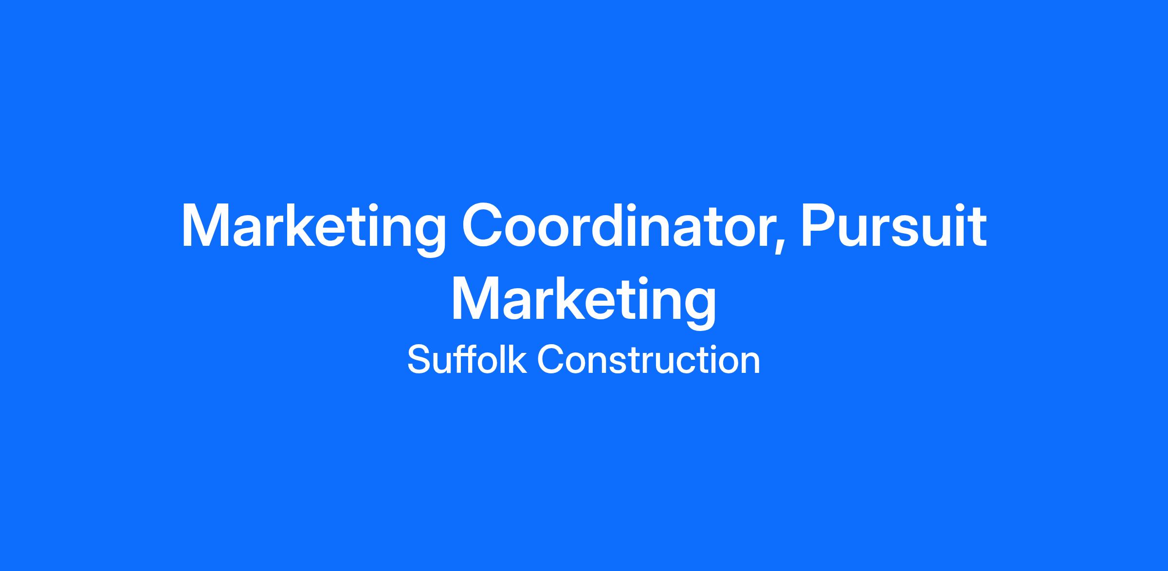 The expected salary range for this position (Marketing Coordinator, Pursuit Marketing) in San Francisco, CA is between $32.2 per hour and $43.8 per hour. This represents the typical salary range for this position and is just one component of Suffolk’s total compensation package. Actual salaries may be based on several factors including, but not limited to, skill set, experience, education and other qualifications. Suffolk offers a comprehensive benefits package as part of its overall compensation strategy. Salary ranges may differ by geography and are reviewed regularly to reflect market trends.