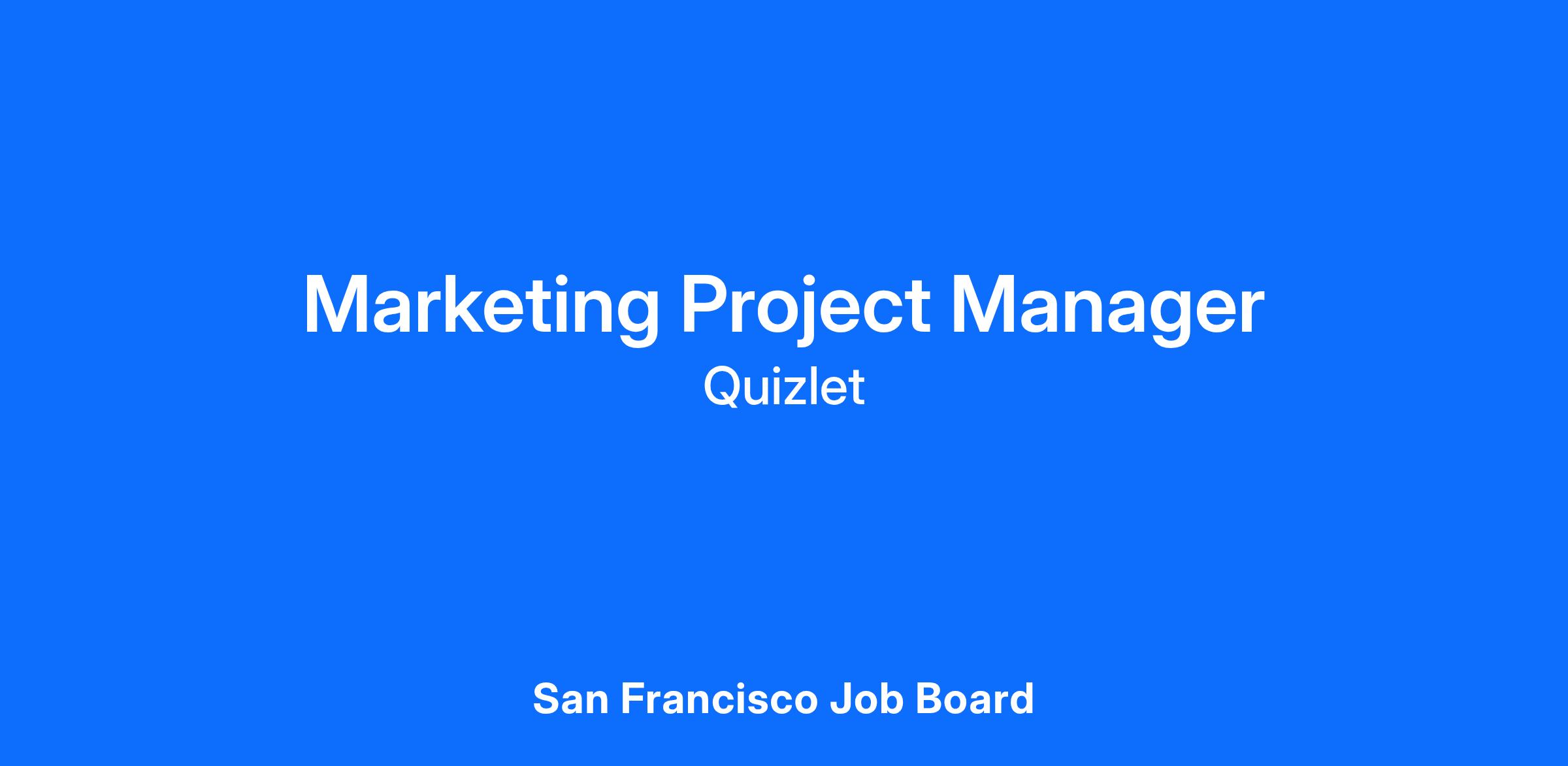 We’re looking for a Marketing Project Manager to bring structure, clarity and operational excellence to how Quizlet’s Marketing organization plans and executes work. As the first project manager for this department, this role is for someone who thrives in ambiguity, a systems thinker, and a hands-on project manager who can create order in fast-paced environments.