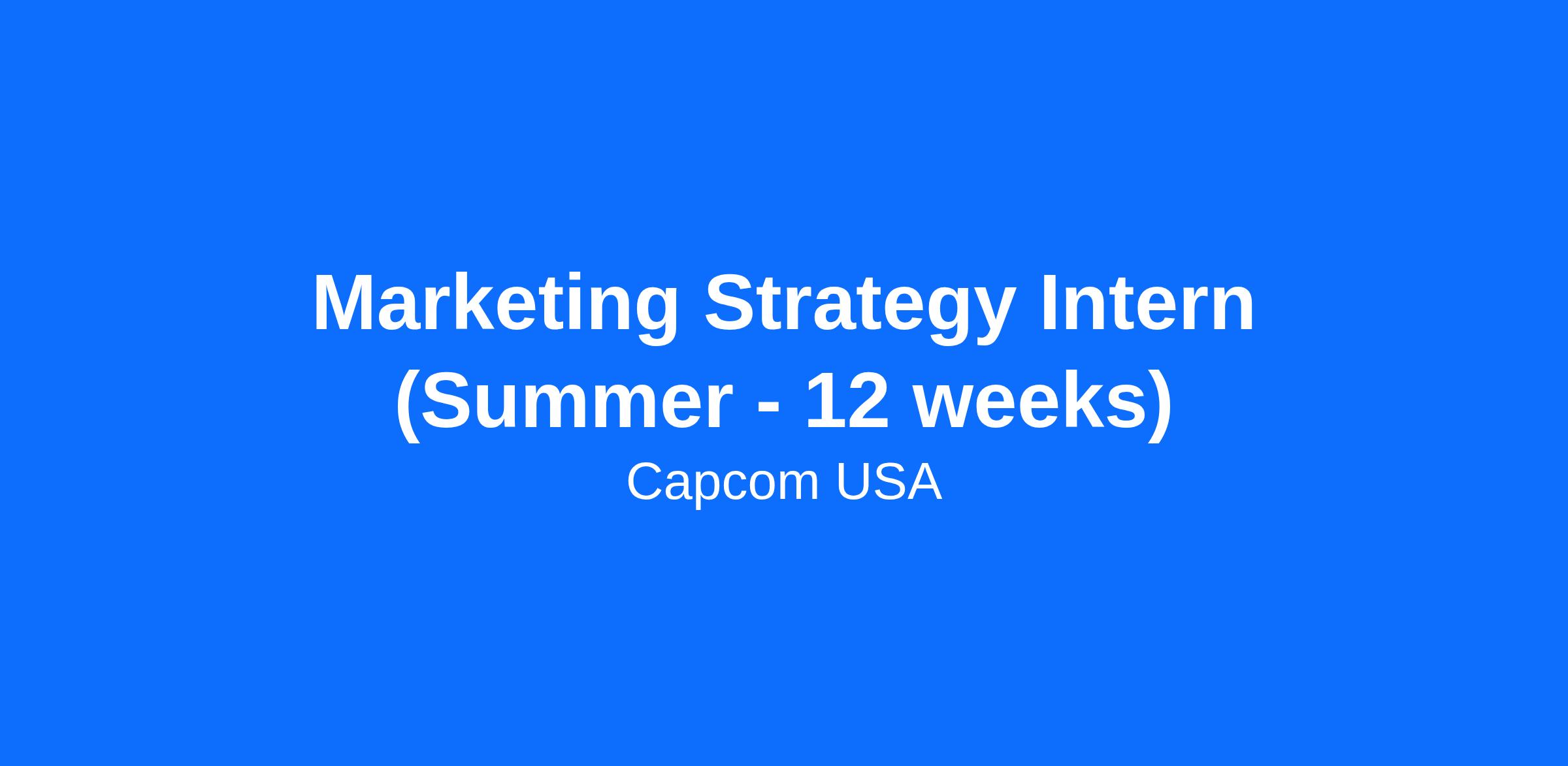 The Intern would be assisting the Capcom USA (CUSA) Associate Manager, Marketing Strategy through administrative support and management of titles and campaigns across the Capcom portfolio with Digital Sales, Brand Marketing, PR/Social, Business Operations, and other departments.