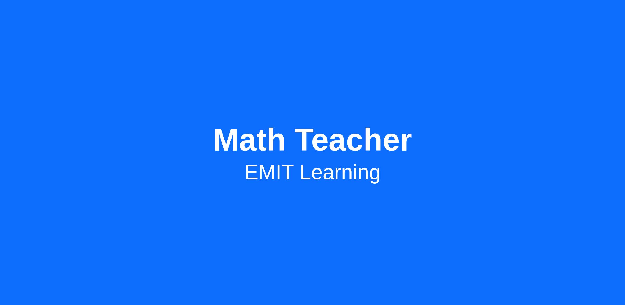 EMIT Learning is currently seeking a passionate and dedicated Math Teacher to join our team. As a math educator, you will play a crucial role in inspiring students to develop problem-solving skills, logical reasoning, and a lifelong appreciation for mathematics. If you are committed to helping students reach their full academic potential through engaging and effective instruction, we encourage you to apply.