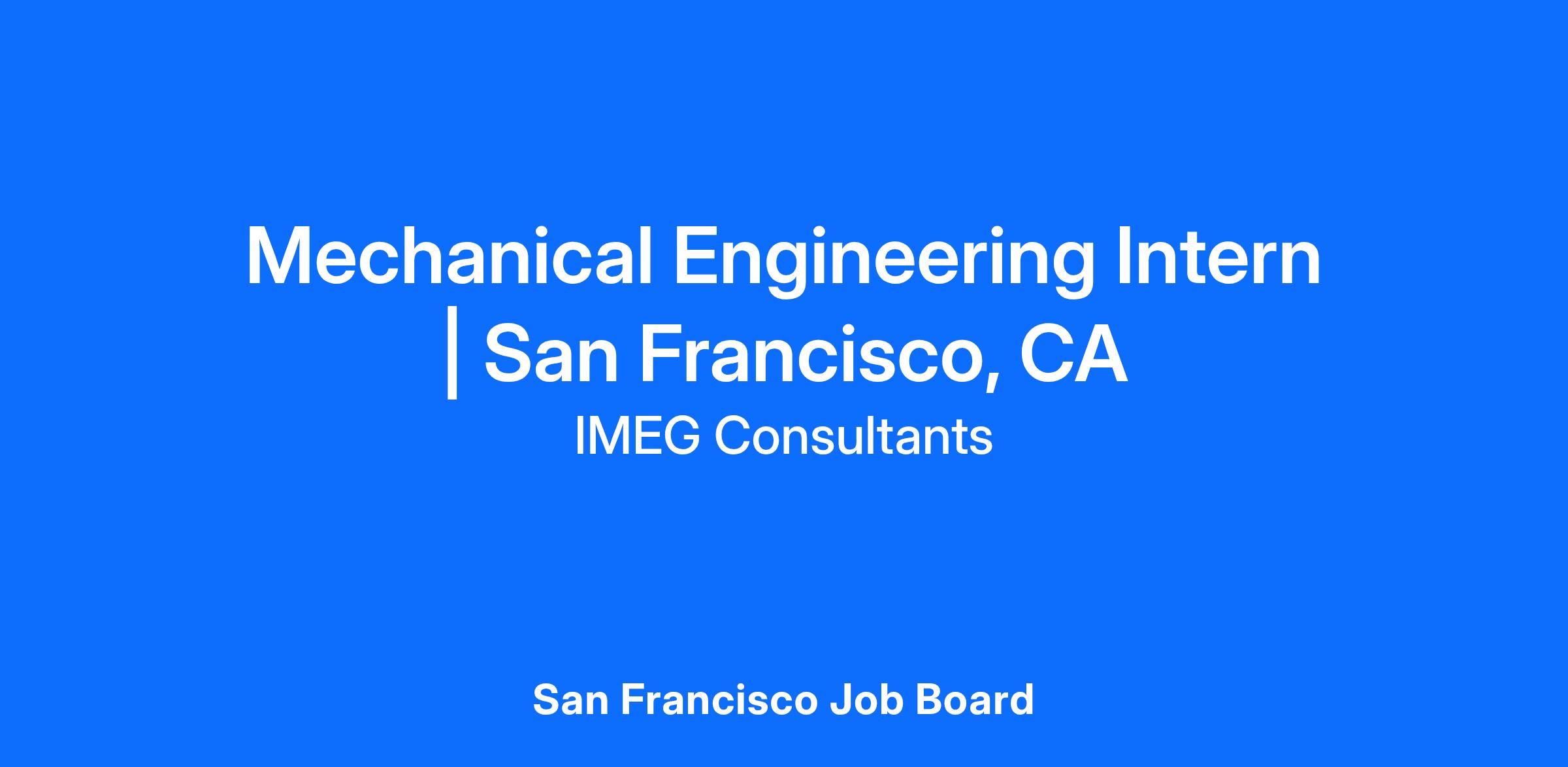 Join IMEG as a Mechanical Engineering Intern in San Francisco and build your future with real-world project experience. Over 10–12 weeks, you’ll contribute to the analysis, design, and implementation oversight of mechanical systems for a variety of vertical building projects. You’ll work alongside experienced engineers, manage tasks within project budgets, and see how your efforts directly support client goals—while gaining the skills, knowledge, and professional network to launch your mechanical engineering career.