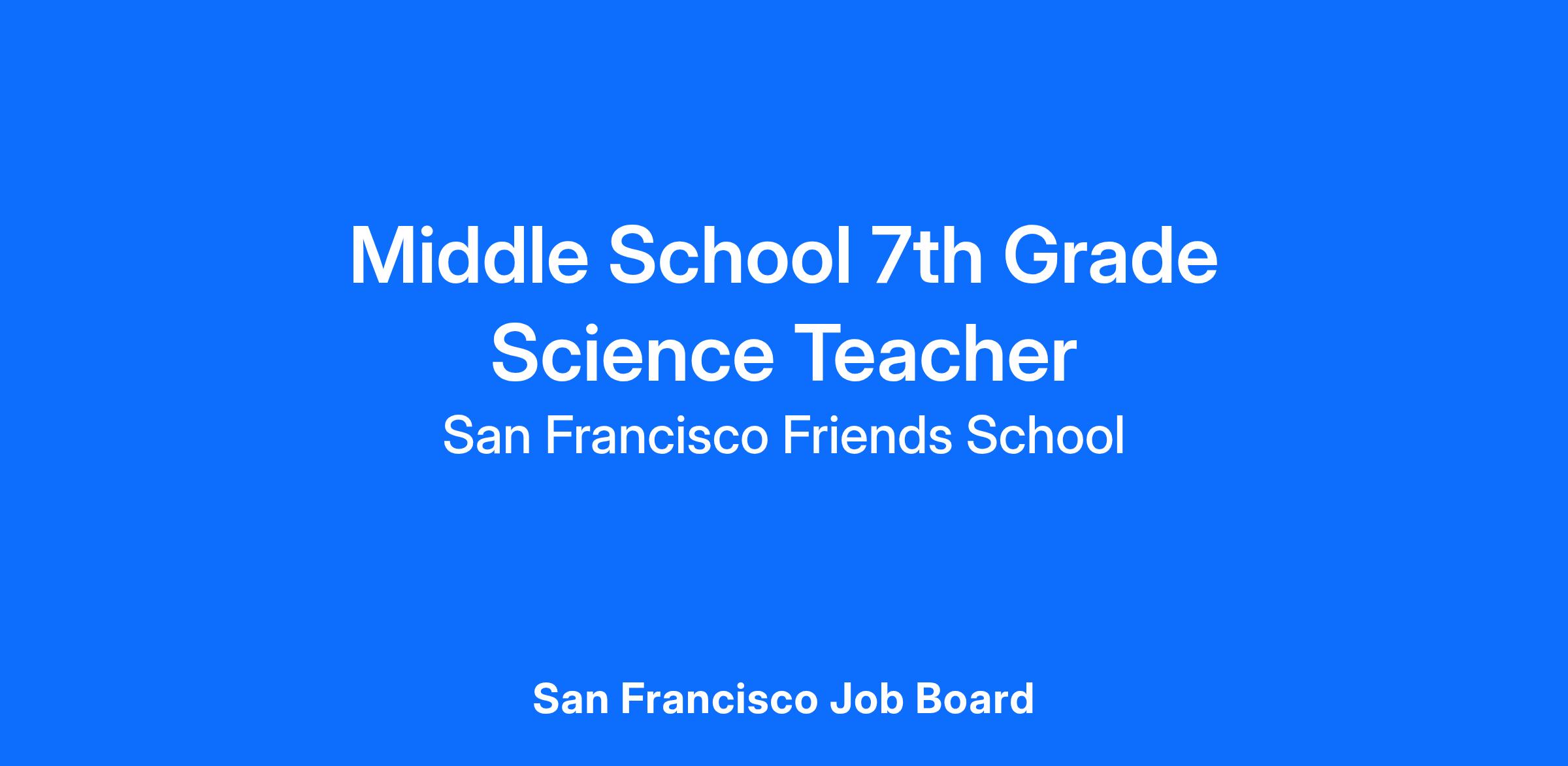 San Francisco Friends School seeks a Middle School Science teacher who is compelled by the school’s mission and committed to progressive, integrated Science education. The ideal candidate brings a deep understanding of project-based learning, engineering, and scientific principles, along with a commitment to fostering curiosity, collaboration, and resilience in a diverse learning community.