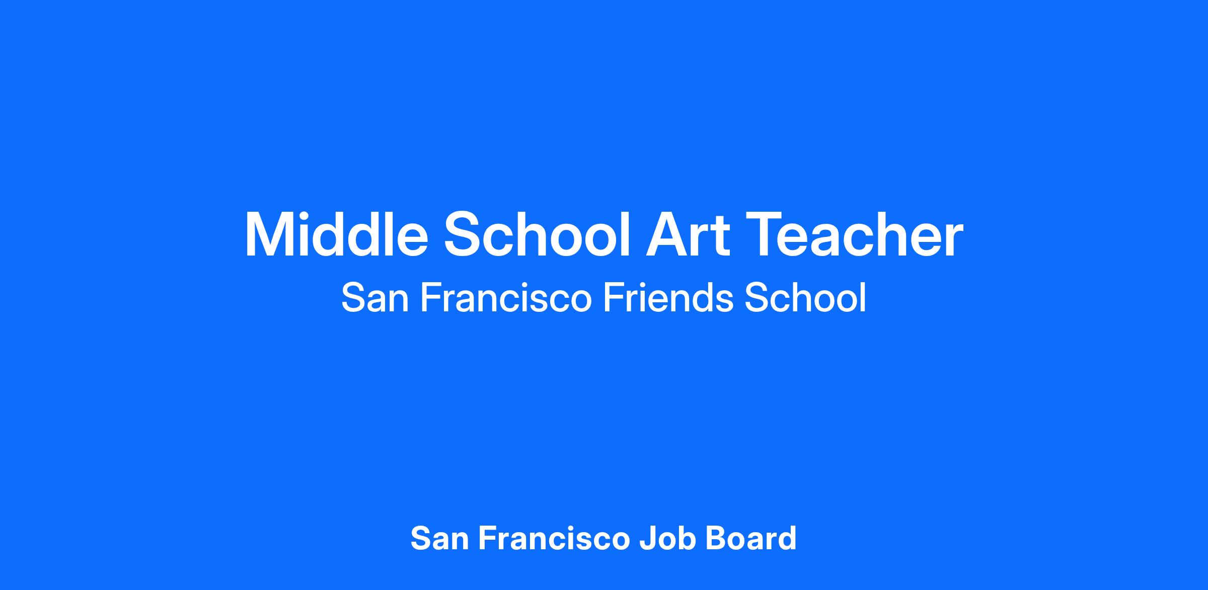 San Francisco Friends School (SFFS) seeks a passionate and creative Middle School Art Teacher to inspire students in grades 5–8 through hands-on learning, innovation, and artistic expression. The ideal candidate brings a deep understanding of a wide range of perspectives, art forms, ideas and techniques used by a variety of cultures. They should demonstrate a commitment to fostering curiosity, collaboration, and resilience in a diverse learning community.