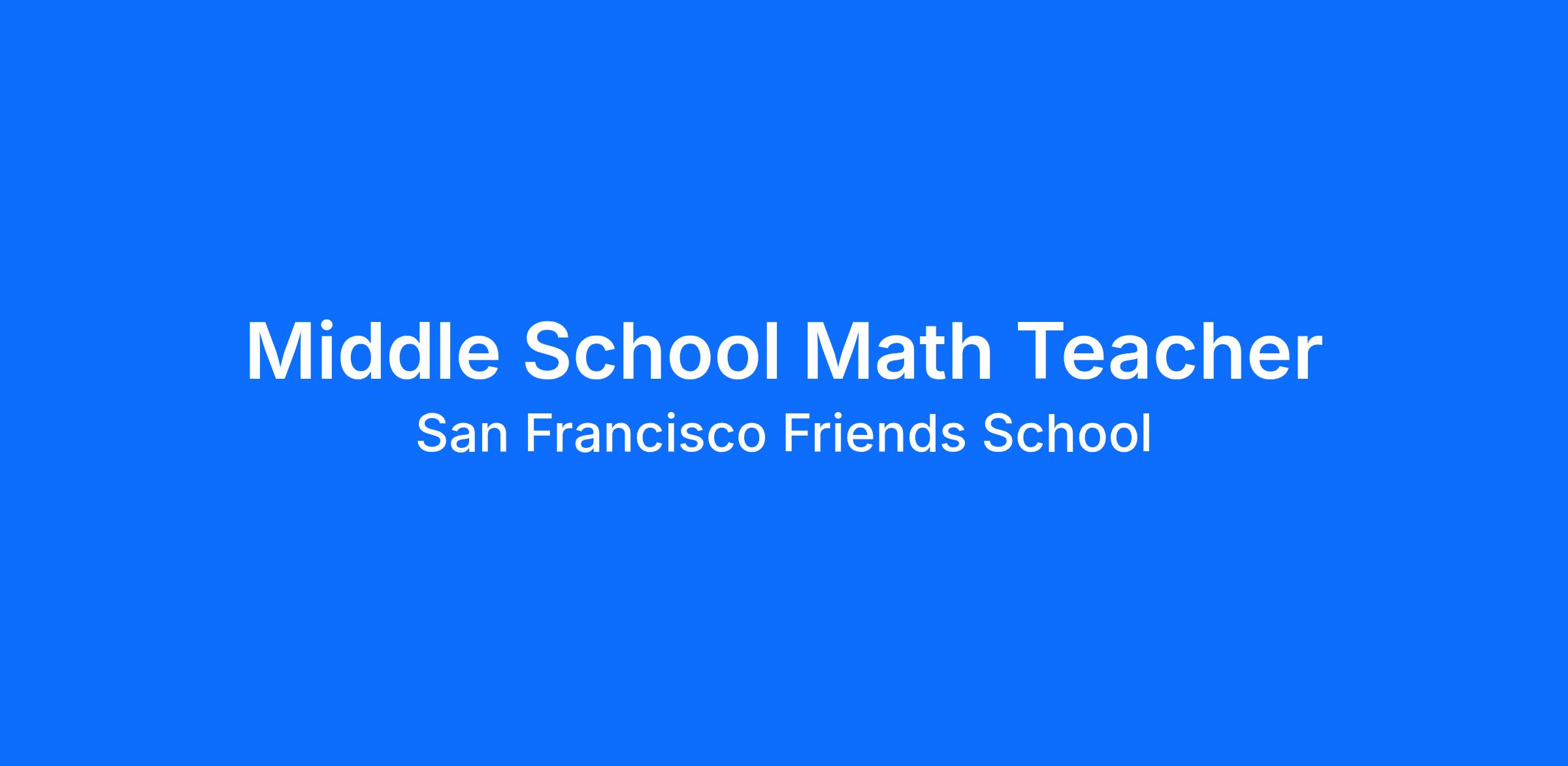 San Francisco Friends School seeks an experienced Middle School math teacher who is compelled by the school’s mission and committed to progressive math education.