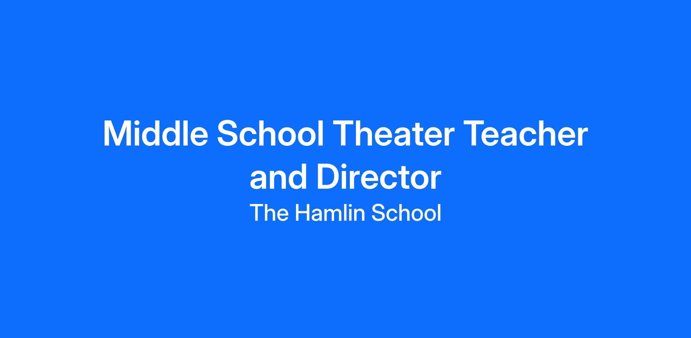 Title: Middle School Theater Teacher and Director