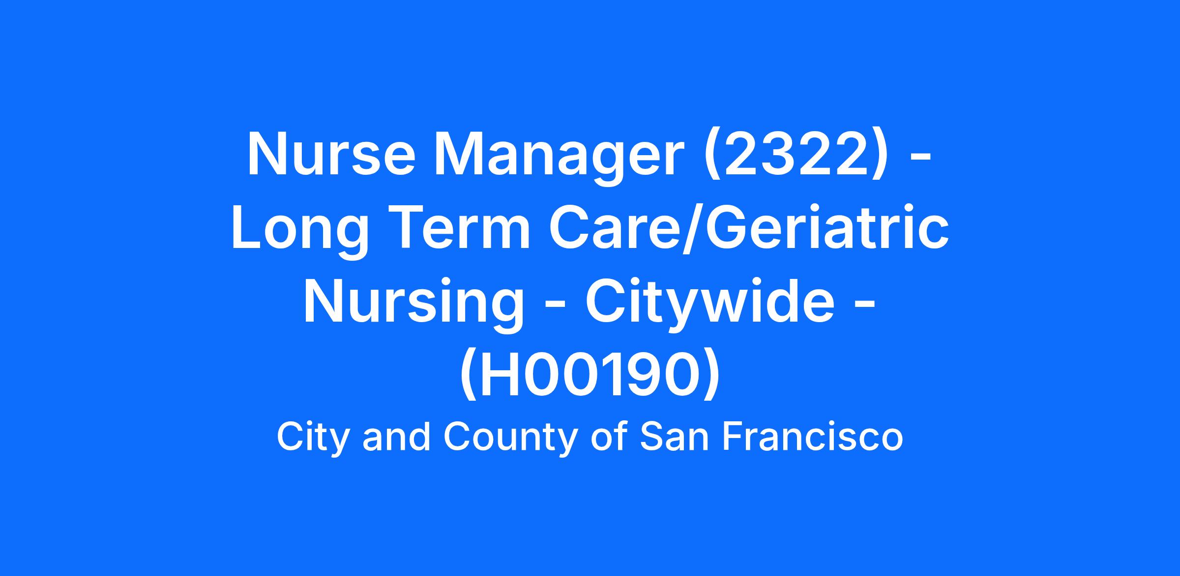The 2322 Nurse Manager (Long Term Care/Geriatric Nursing) may perform other duties as assigned/required.