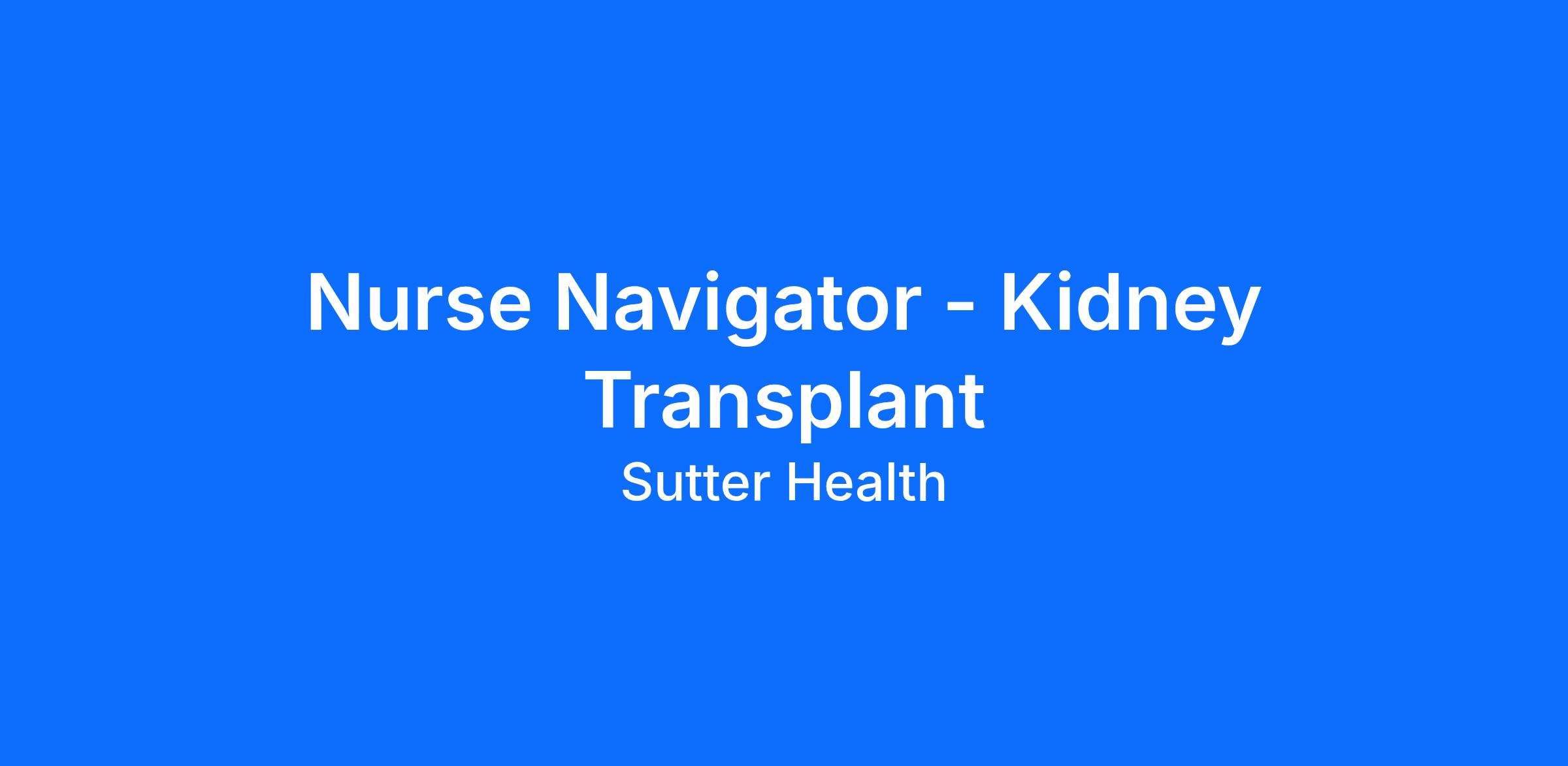 A professional registered nurse (RN) who offers individualized assistance to patients, families and caregivers to help overcome health care system barriers. Enhances the patient experience and improves the clinical outcome for patients by providing a seamless navigation process throughout the continuum of care. Responsible for collaborating with physicians and members of the interdisciplinary teams to triage, coordinate, and consistently manage patient care by educating the patient and serving as a point of contact for patients and families. Participates in strategic initiatives within the clinical program or service line to include developing, implementing and monitoring navigation activities and sustainability, facilitates shared decision making and patient engagement by forming trusting relationships and addressing patients' communication and health literacy needs, while helping them integrate their values and preferences into treatment decisions. Works for and promotes positive outcomes for patients, providers and the Sutter health care system.Job Description: