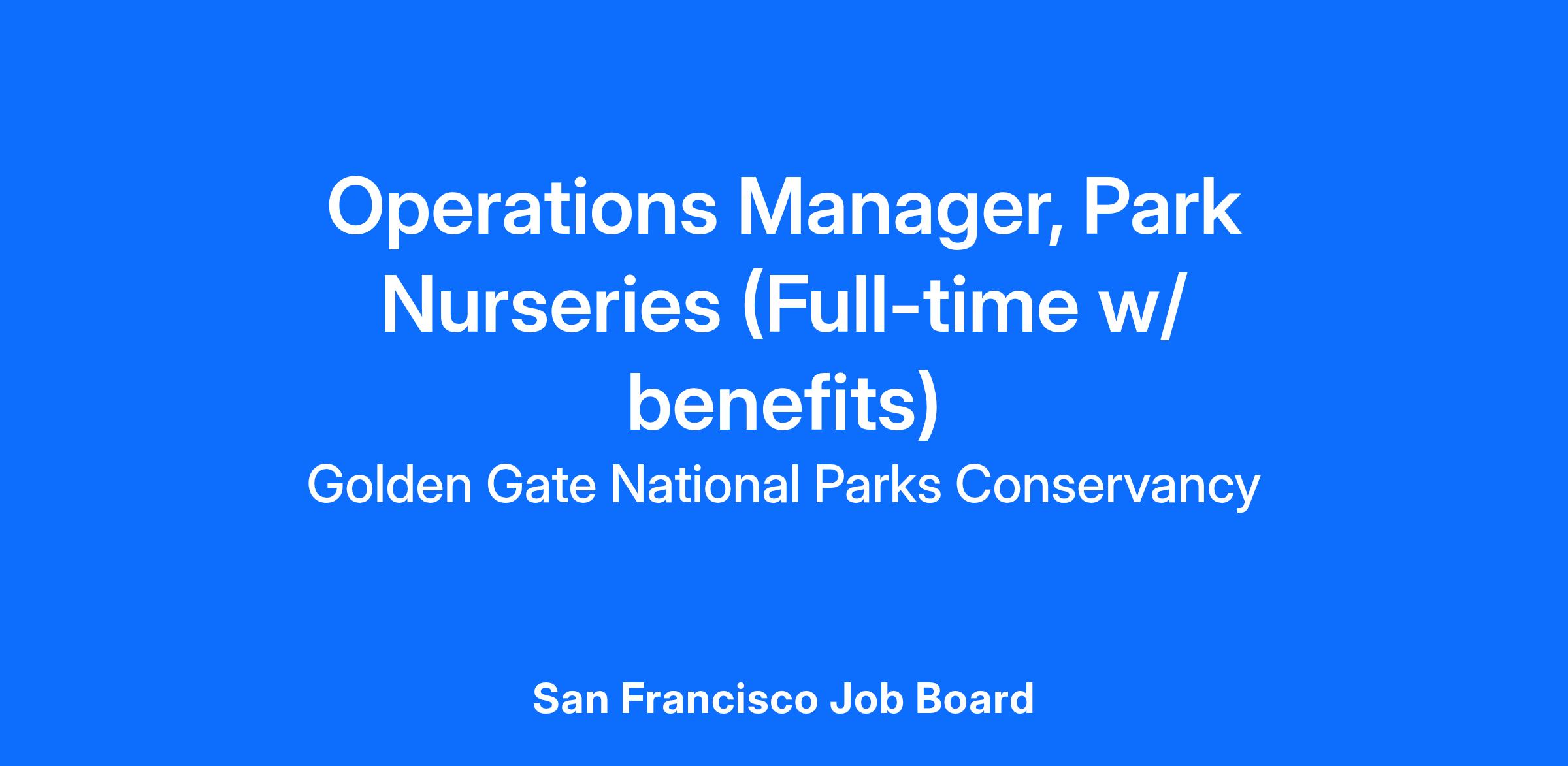 This is a full-time, exempt position based in the Presidio of San Francisco. Work is performed primarily in the office plus time onsite at the nurseries. This position is eligible to telework for appropriate tasks.