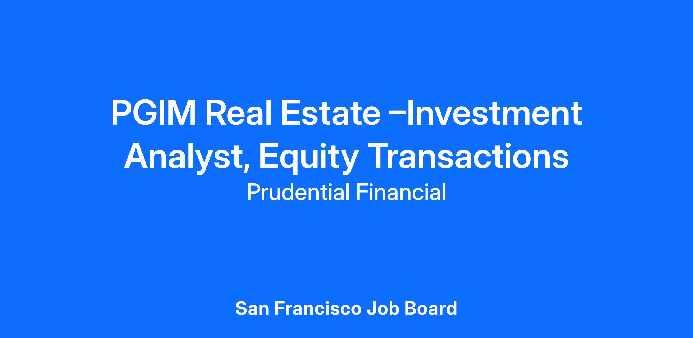This role is based in PGIM Real Estate’s San Francisco office.