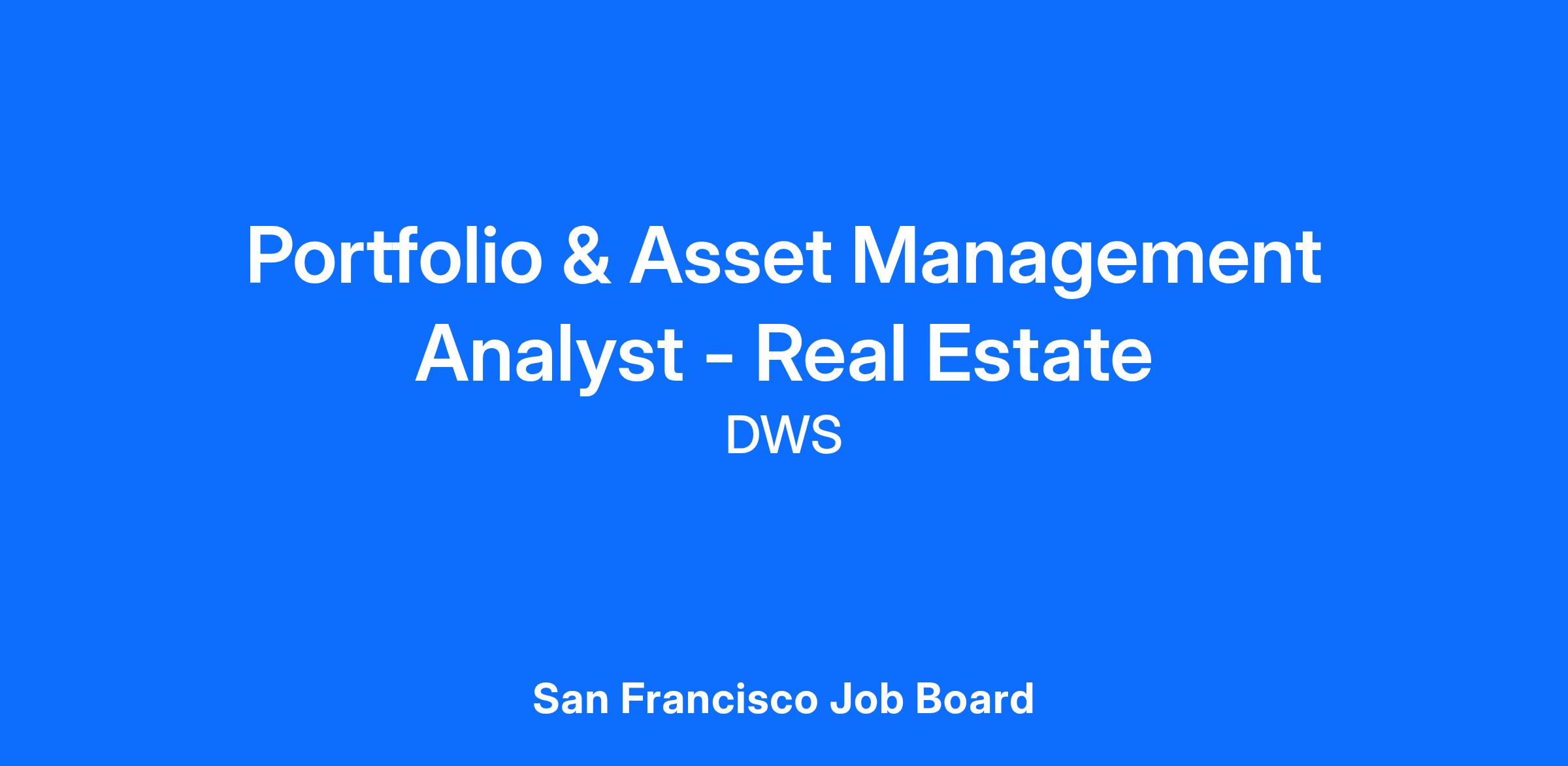 The DWS real estate group is hiring a Portfolio and Asset Management Analyst for our San Francisco office. The ideal professional is an eager, self-motivated team player with a strong analytical skill set. Primary duties will include providing quantitative and qualitative support for Portfolio Managers and Asset Managers nationally. The opportunity offers broad exposure to 15-25 properties across the office, industrial, multi-family and retail sectors, usually in the US. Properties will typically have a “core” risk profile, but some will be “core+”, “value-add”, “opportunistic”, or development.