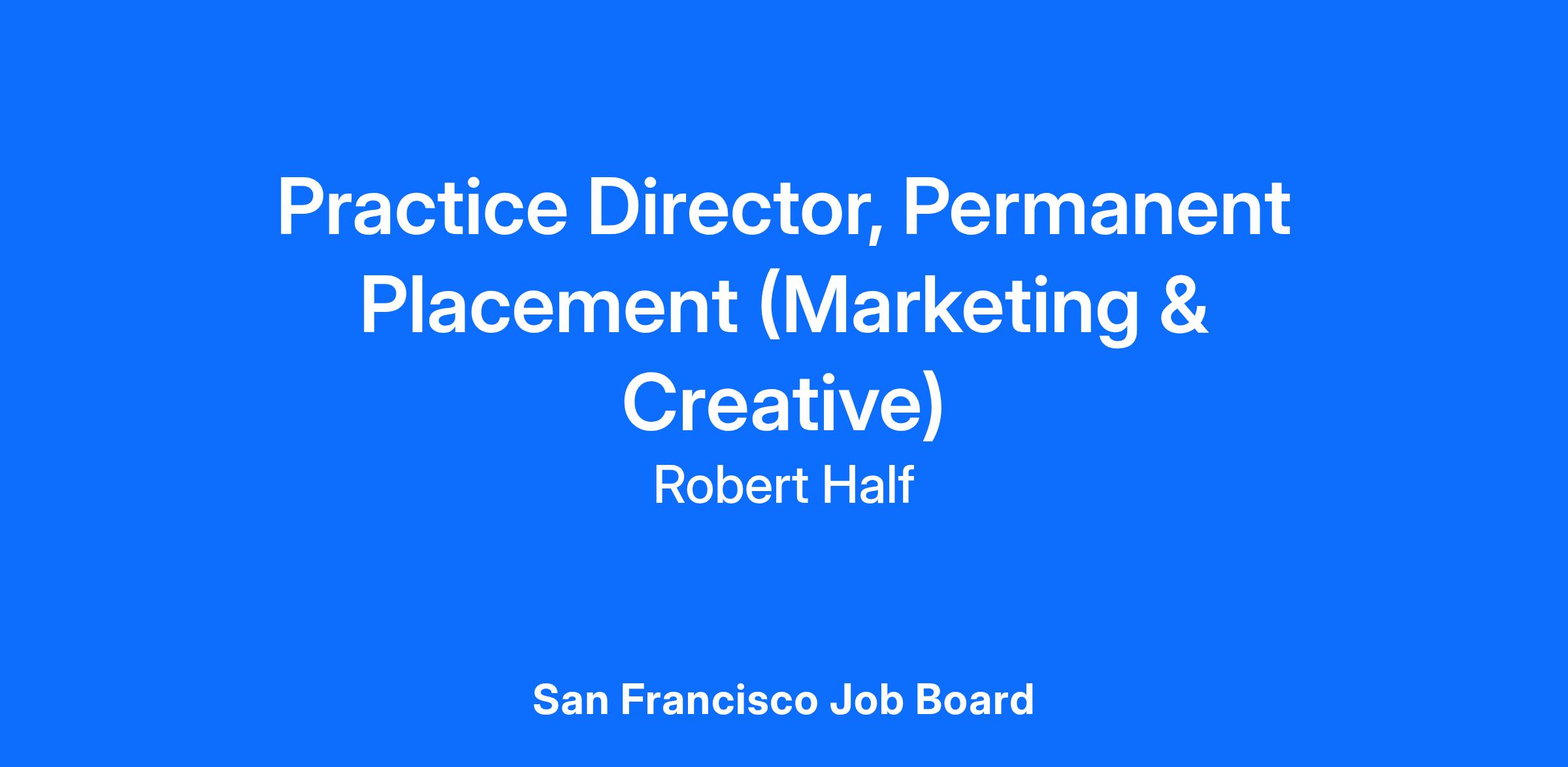 Practice Director, Permanent Placement (Marketing & Creative)LOCATION