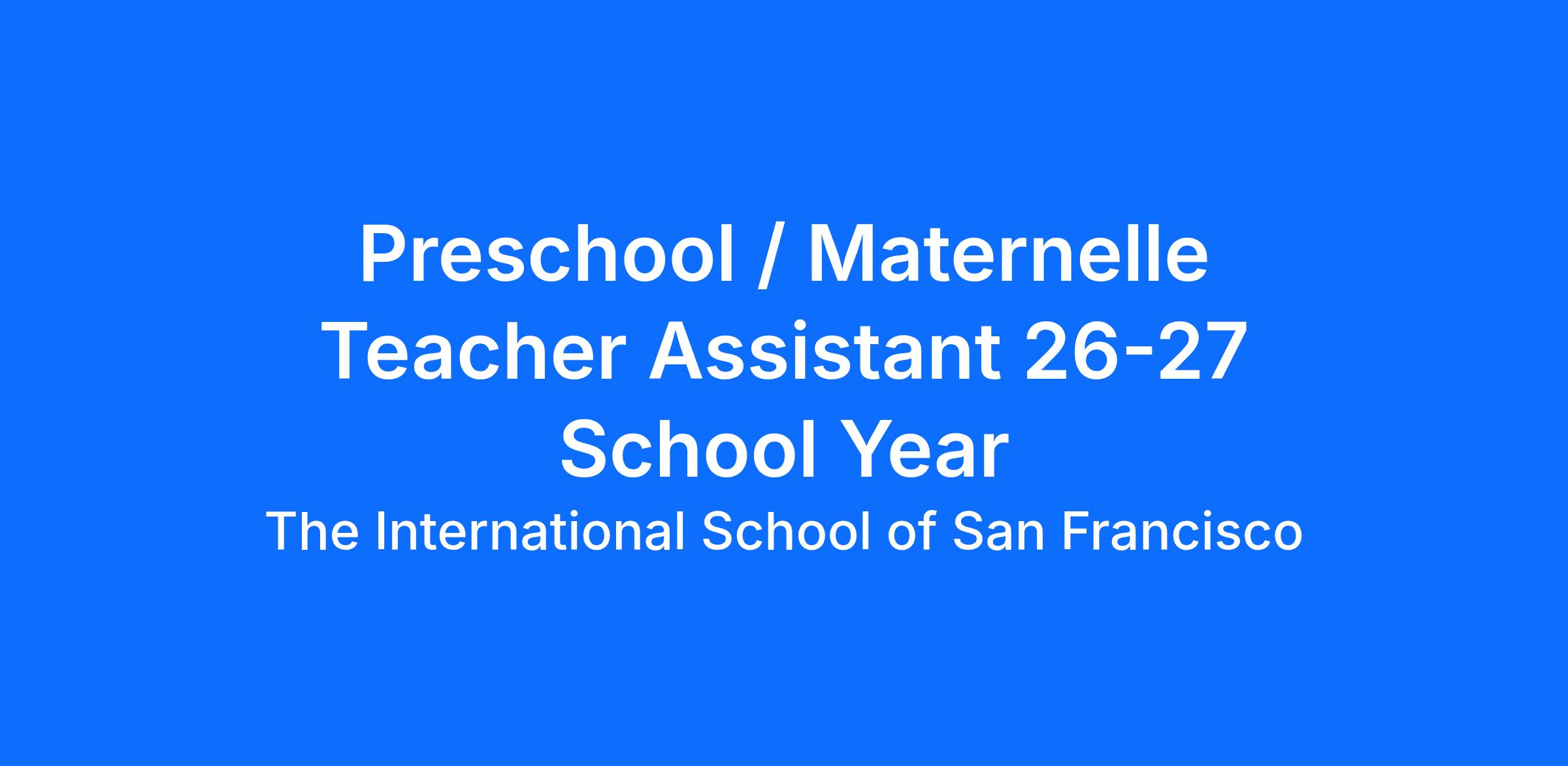 This position is for a Teacher's Assistant full-time position (35h/week) in our Early Childhood Education Center also known as the Preschool/Maternelle (Grade PK2-PK4), for the 2026-2027 school year.