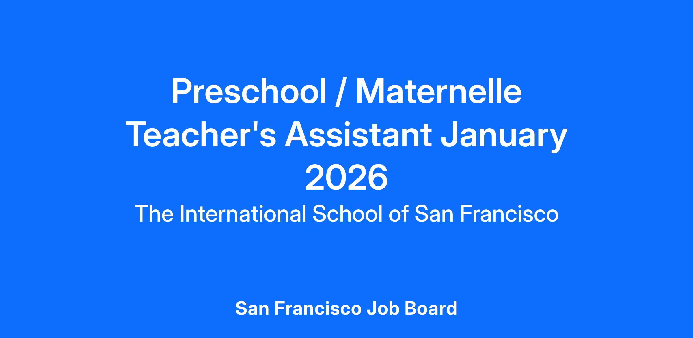 Preschool / Maternelle Teacher's Assistant January 2026