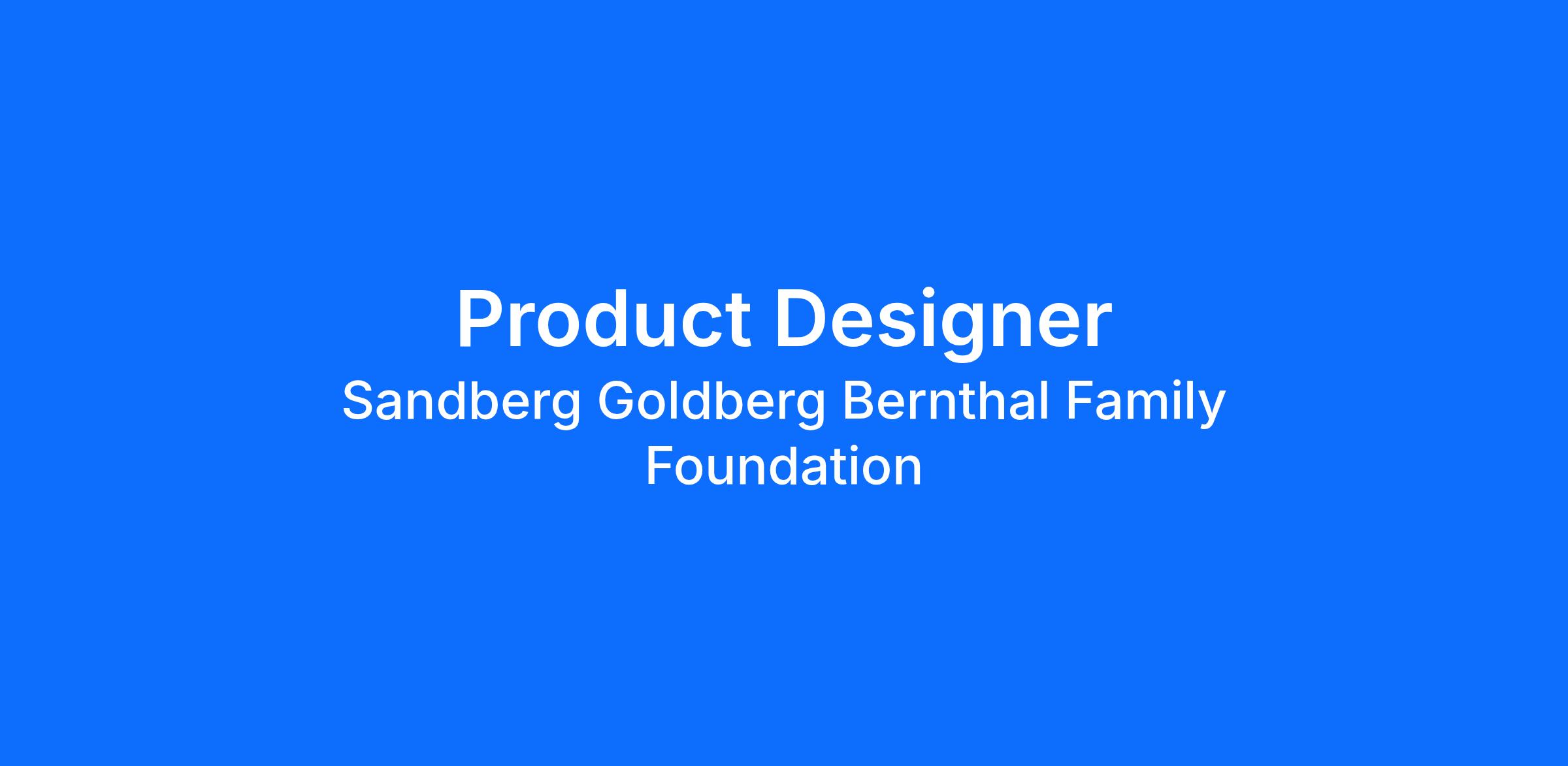 The Sandberg Goldberg Bernthal Family Foundation is committed to Equal Employment Opportunity without regard to age, race, ethnicity, gender, protected veteran status, disability, sexual orientation, gender identity, or religion. It’s important to us that people of all identities and backgrounds see themselves represented and included in our work, so we actively encourage people of all identities and experiences to apply.