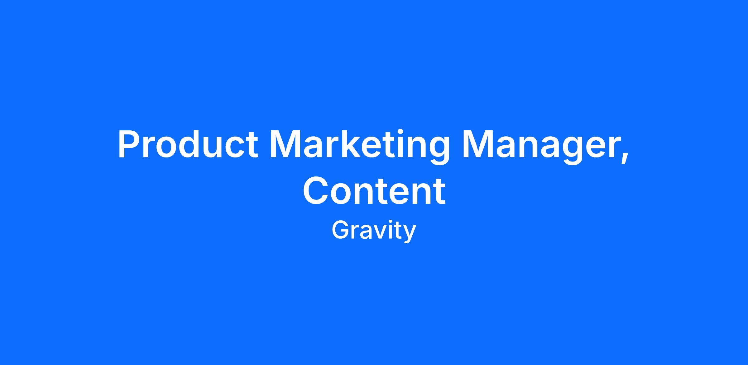 We are looking for a Product Marketing Manager, Content to craft the stories that accelerate Gravity's growth. As an exceptional writer and strategic storyteller, you'll create content that breaks through the noise, makes Gravity a household name in our markets, and drives conversion at every stage of the funnel. You'll develop compelling narratives, campaigns, and assets that make Gravity impossible to ignore.