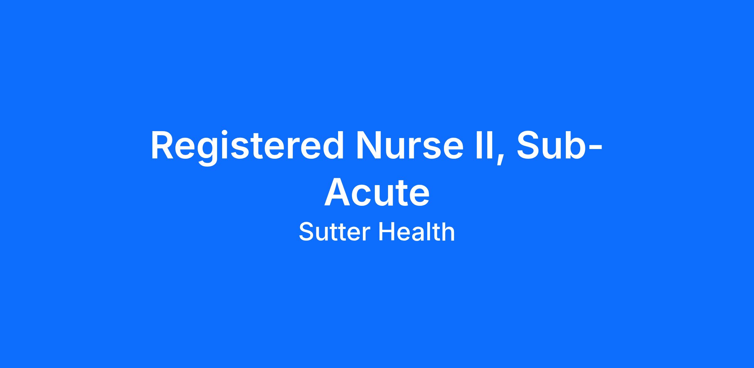 Pay Range is $89.55 to $118.73 / hourThe compensation range may vary based on the geographic location where the position is filled. Total compensation considers multiple factors, including, but not limited to a candidate’s experience, education, skills, licensure, certifications, departmental equity, training, and organizational needs. Base pay is only one component of Sutter Health’s comprehensive total rewards program. Eligible positions also include a comprehensive benefits package.