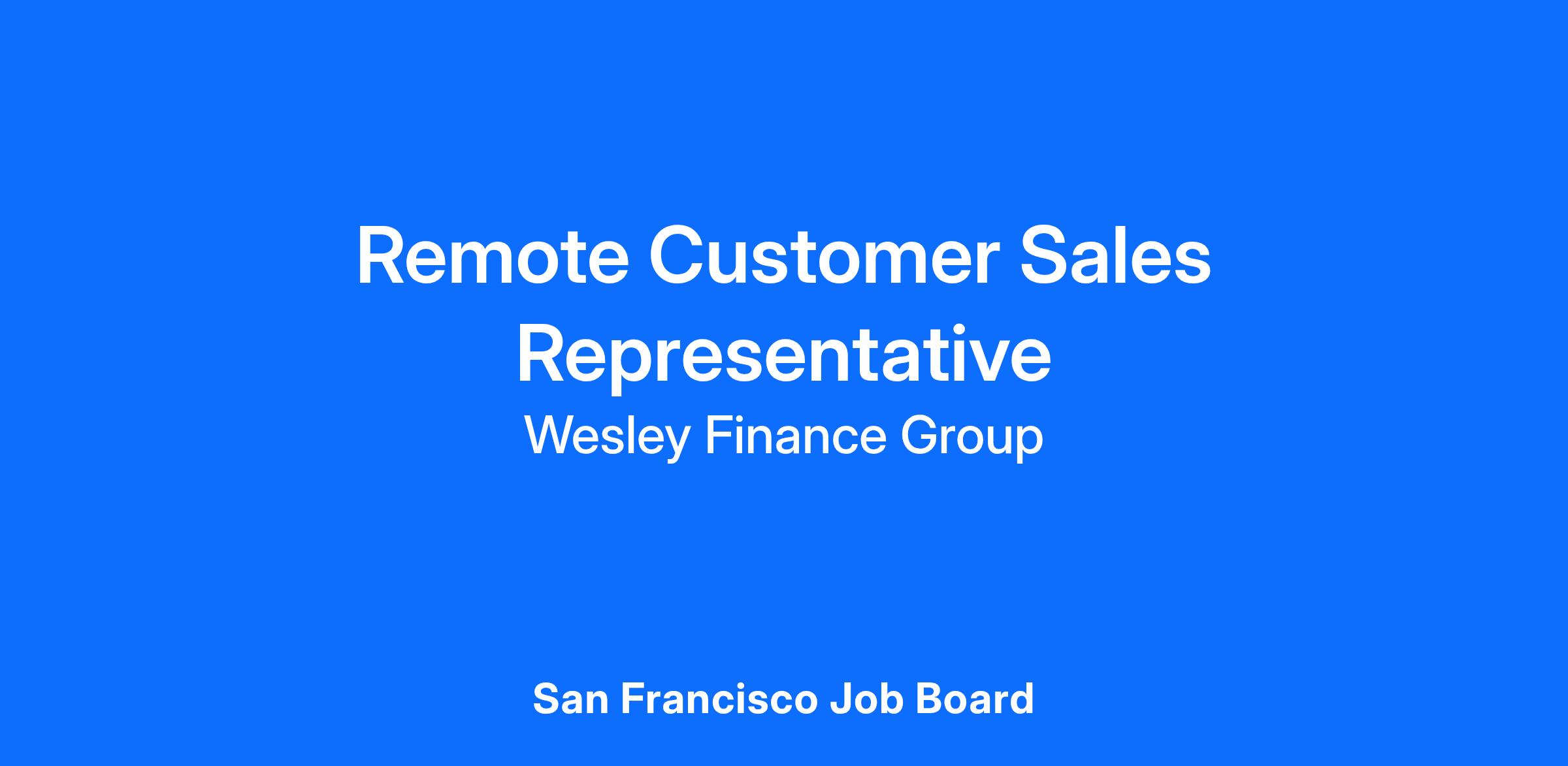 Eager to kickstart a fulfilling career in sales without the daily grind of commuting? Wesley Finance Group is expanding rapidly, and we're searching for ambitious, self-driven individuals to join our team as Remote Customer Sales Representative. This exceptional work-from-home opportunity provides unmatched flexibility, limitless earning potential, and thorough training to guarantee your success, even if you're new to the sales landscape. If you're ready for an engaging remote position offering a direct path to boundless professional growth, we invite you to connect with us!