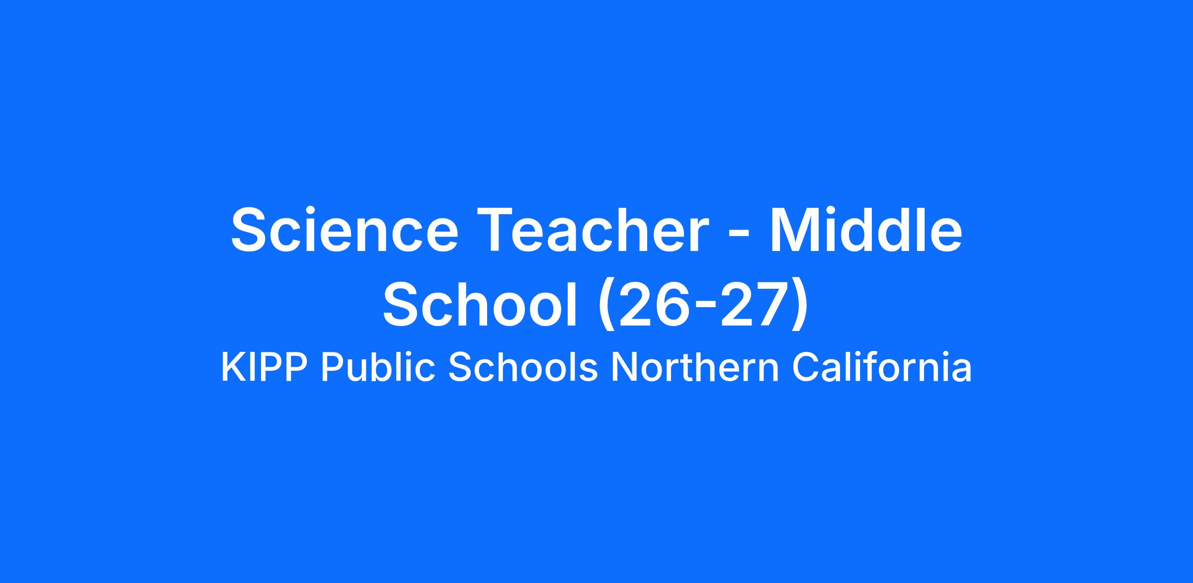 Teach with Purpose: At KIPP Public Schools Northern California, our Science Teachers bring our academic and cultural visions to life. You will design engaging lessons, use data to guide instruction, and create a classroom where every student learns and thrives. You will also integrate Social Emotional Learning and Restorative Practices to build a joyful, inclusive, and safe community.