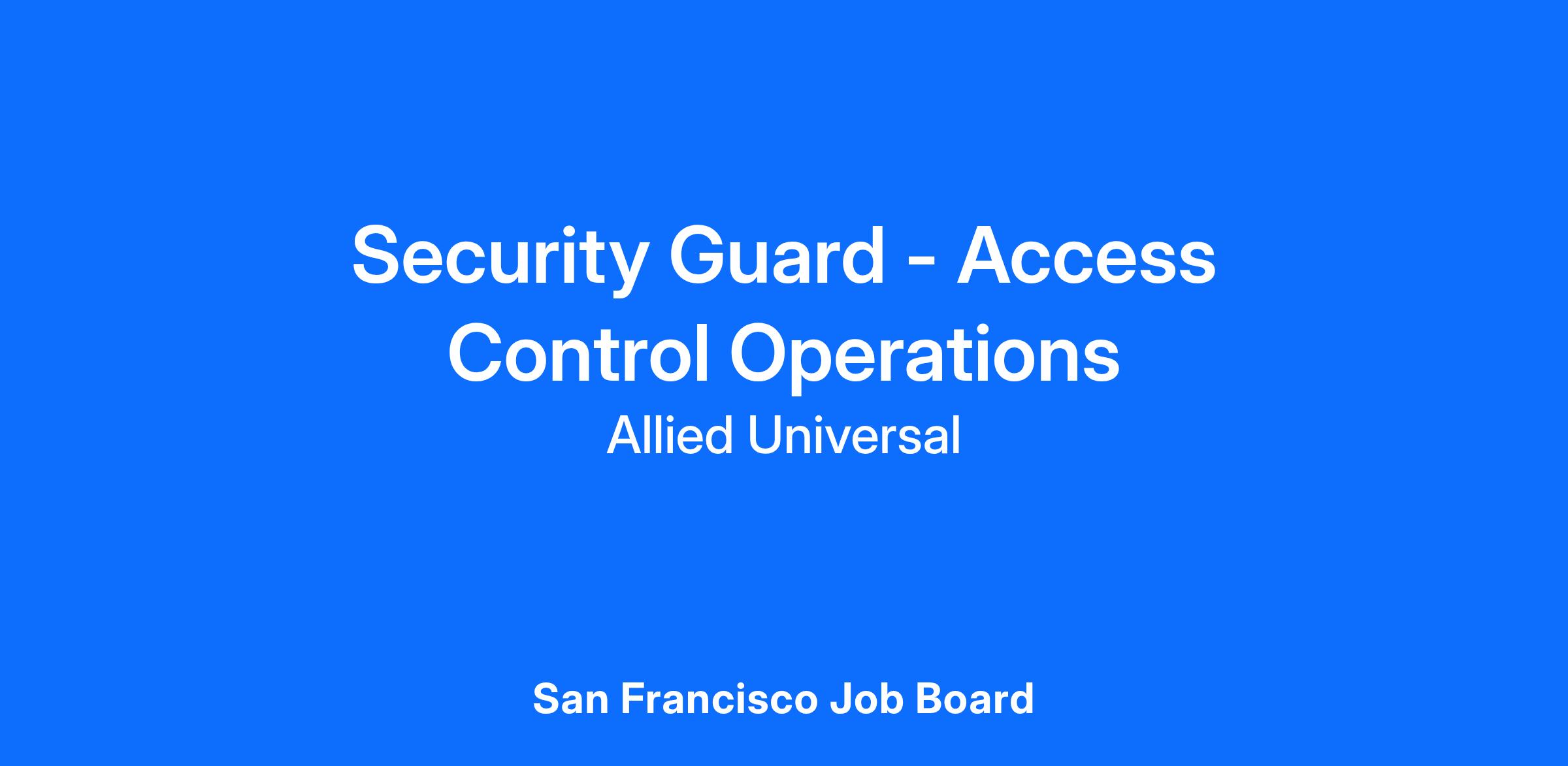 As a Security Guard - Access Control Operations in San Francisco, CA, you will serve and safeguard clients in a range of industries such as Commercial Real Estate, and more. Join Allied Universal as an Access Control professional in a dynamic commercial real estate location. You will monitor and patrol assigned areas, help to deter security-related incidents, and provide exceptional customer service while managing access points. Your visible presence and strong communication skills will be essential in fostering a secure environment for tenants and visitors. Become part of a team that values integrity, reliability, and putting people first.