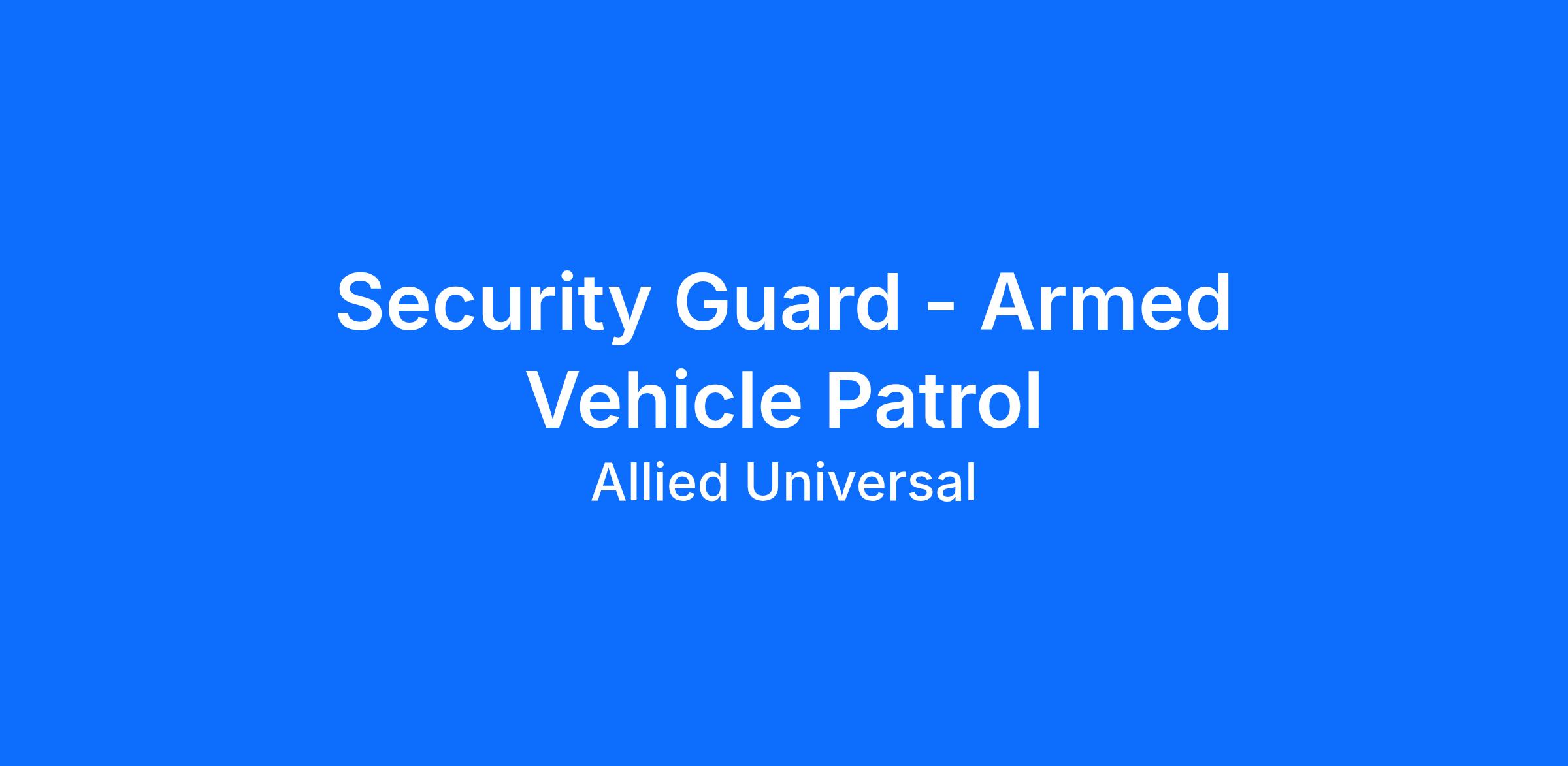 As a Security Guard - Armed Vehicle Patrol in San Francisco, CA, you will serve and safeguard clients in a range of industries such as Government, and more. As a Security Officer with Allied Universal at a government transportation location, you will conduct routine patrols, stay highly visible to help reduce security-related incidents, and respond to requests with clear communication and strong customer service. This is an armed post requiring an Armed Guard Card or license. Join a team that is agile, reliable, and innovative, with a caring culture built on teamwork and integrity.
