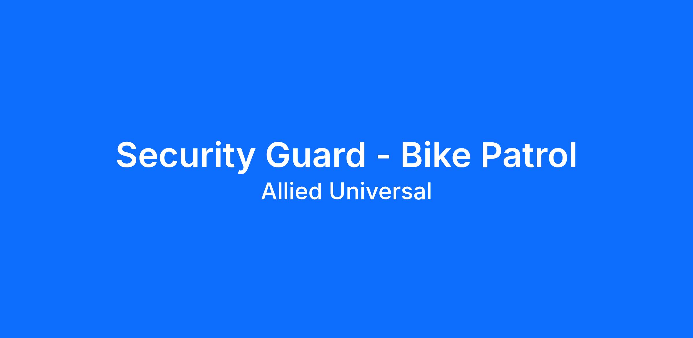 As a Security Guard - Unarmed Bike Patrol in South San Francisco, CA, you will serve and safeguard clients in a range of industries such as Commercial Real Estate, and more. As an unarmed Patrol Officer at a commercial real estate location, you will monitor and patrol assigned areas, conduct routine rounds, and stay visible to help reduce security-related incidents. You will respond to concerns, document observations, and deliver strong customer service through clear communication. Join Allied Universal where we are agile, reliable, and innovative, with a caring culture that puts people first and a team that delivers with integrity.