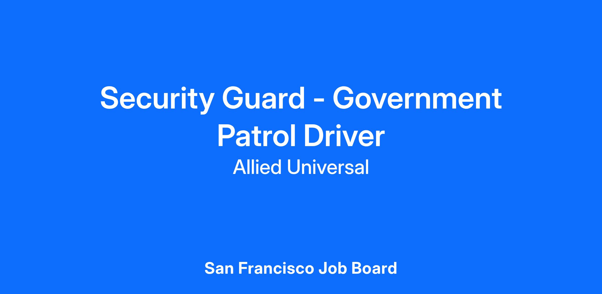 As a Security Guard - Government Patrol Driver in San Francisco, CA, you will serve and safeguard clients in a range of industries such as Government, and more. As a Patrol Officer with Allied Universal in a government location, you will monitor and patrol assigned areas to help deter security-related incidents and provide a visible presence. Your responsibilities include conducting routine patrols, remaining approachable to offer exceptional customer service, and maintaining clear communication with staff and visitors. This is a driving post, so a valid driver's license is required. Join a team that values agility, reliability, and innovation, and be part of a caring culture where teamwork and integrity are at the core of everything we do.