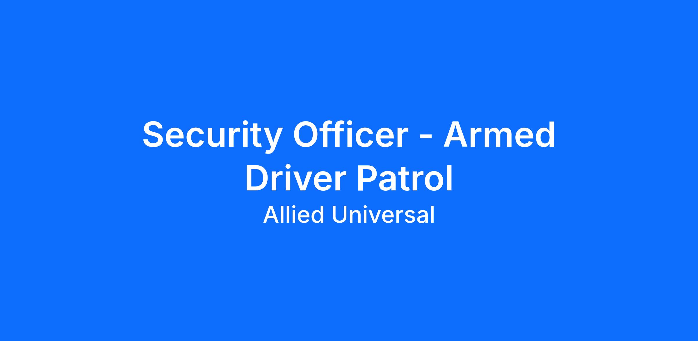 As a Security Officer - Armed Driver Patrol in San Francisco, CA, you will serve and safeguard clients in a range of industries such as Financial Institutions, and more. As an Armed Patrol Officer at a financial institution location, you will conduct routine foot and vehicle patrols, maintain a visible presence to help to deter security-related incidents, and respond to alarms and service calls with calm professionalism. This armed, driving post requires an armed guard card or license and a valid driver’s license. Join Allied Universal to deliver through teamwork with agility, reliability, innovation, and integrity.