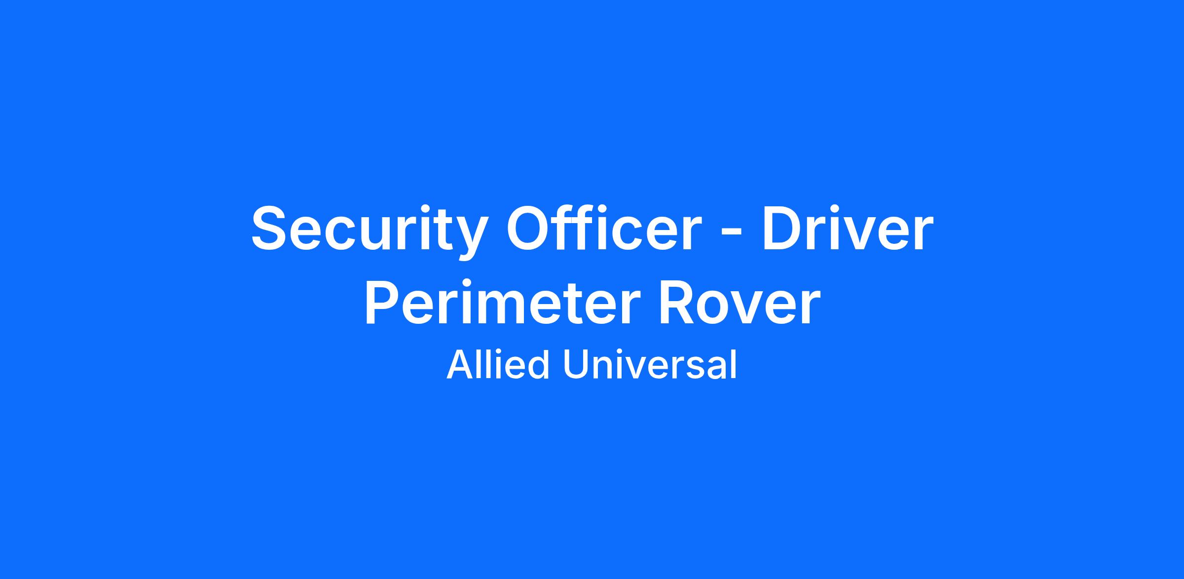 As a Security Officer - Driver Perimeter Rover in South San Francisco, CA, you will serve and safeguard clients in a range of industries such as Healthcare, and more. As an Unarmed Patrol Officer with Allied Universal at a leading healthcare location, you will conduct routine patrols, remain highly visible to help to deter security-related incidents, and support staff, patients, and visitors through strong customer service and clear communication. This is a driving post requiring a valid driver’s license. Bring our agile, reliable, and innovative approach, act with integrity, and deliver through teamwork in a people-first culture.