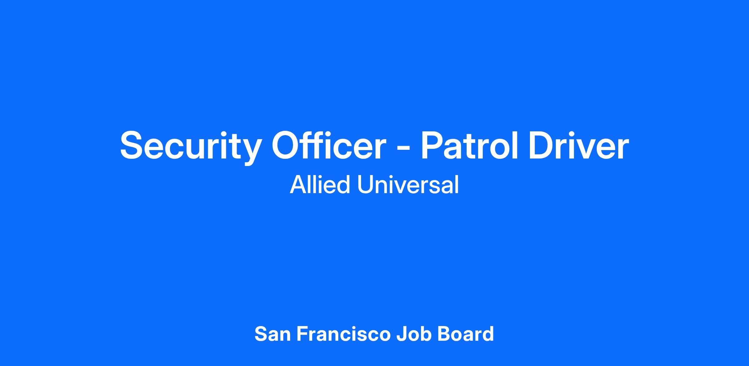 As a Security Officer - Commercial Patrol Driver in South San Francisco, CA, you will serve and safeguard clients in a range of industries such as Commercial Real Estate, and more. As a Patrol Unarmed Officer with Allied Universal, you will monitor and patrol commercial real estate locations, remaining visible to help deter security-related incidents and provide an exceptional presence. Your role involves conducting routine patrols, assisting guests and tenants, and offering outstanding customer service while upholding our core values of teamwork, integrity, and people-first care. This is a driving position, so a valid driver's license is required. Join our agile and innovative team to make a positive impact in a dynamic environment.
