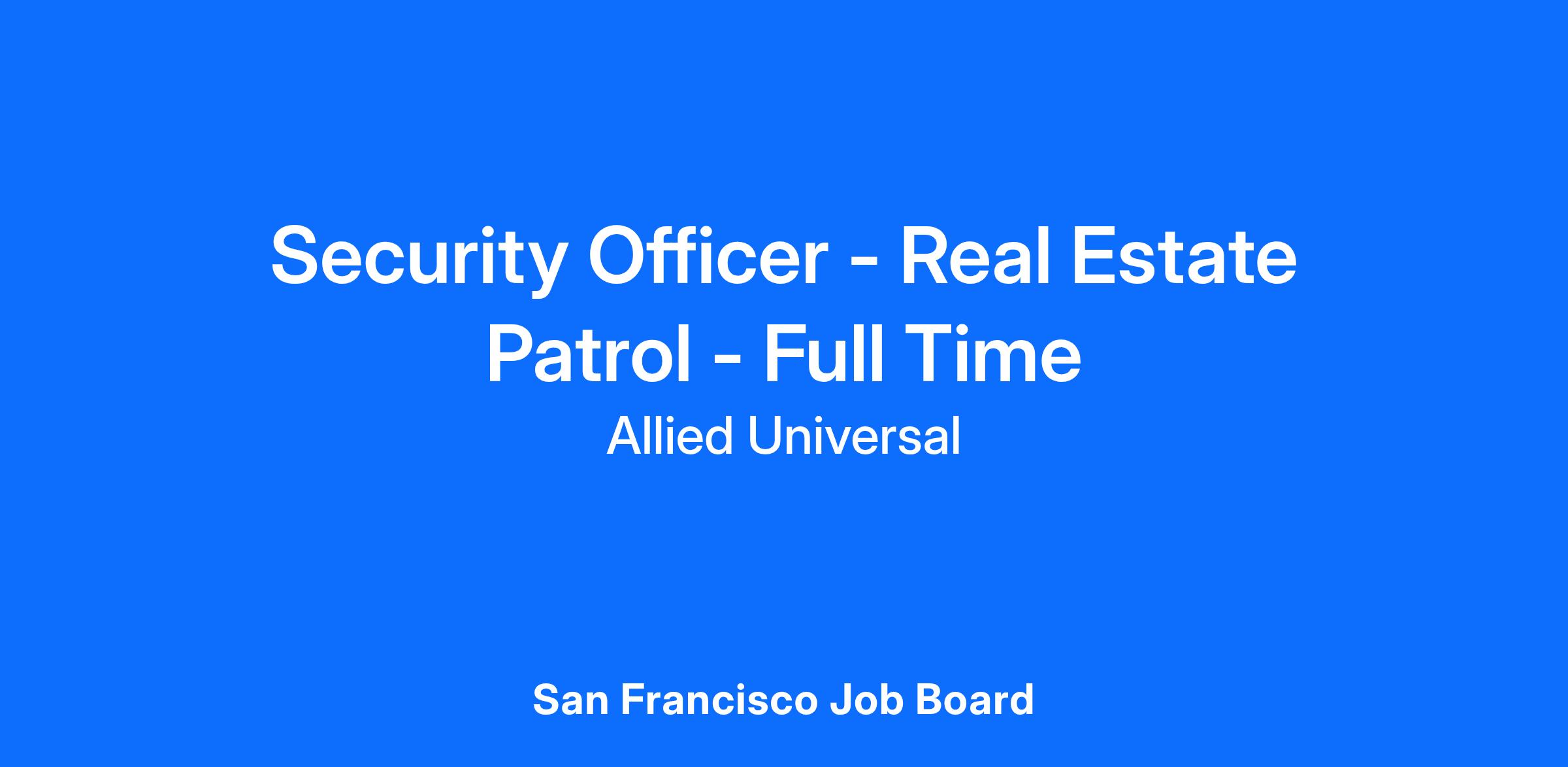 As a Security Officer - Real Estate Patrol - Full Time in San Francisco, CA, you will serve and safeguard clients in a range of industries such as Commercial Real Estate and more .