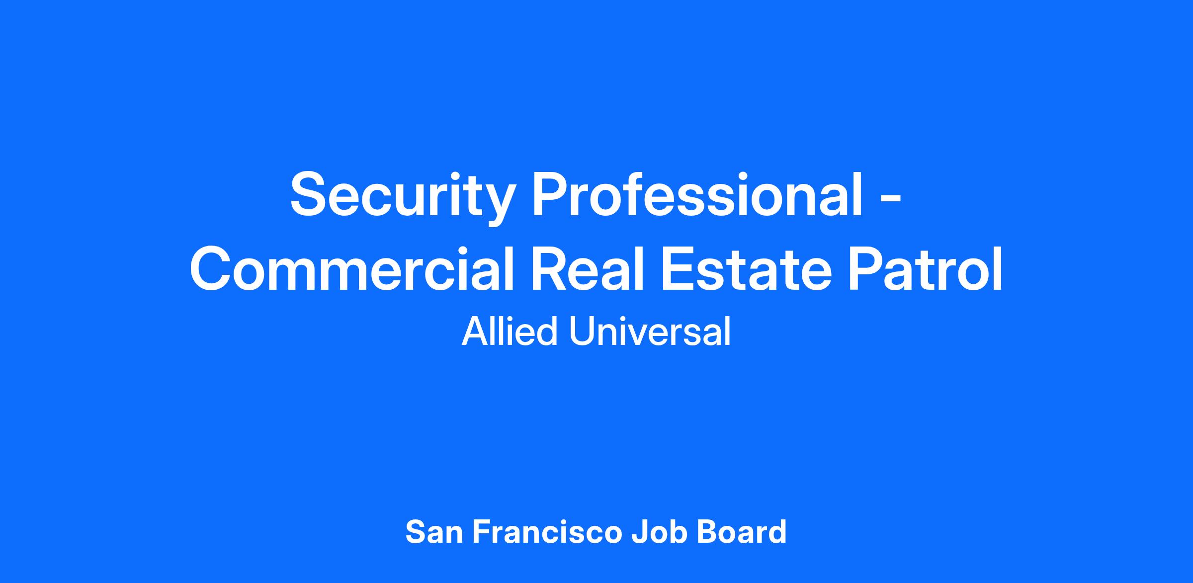 As a Security Professional - Commercial Real Estate Patrol in San Francisco, CA, you will serve and safeguard clients in a range of industries such as Commercial Real Estate, and more.