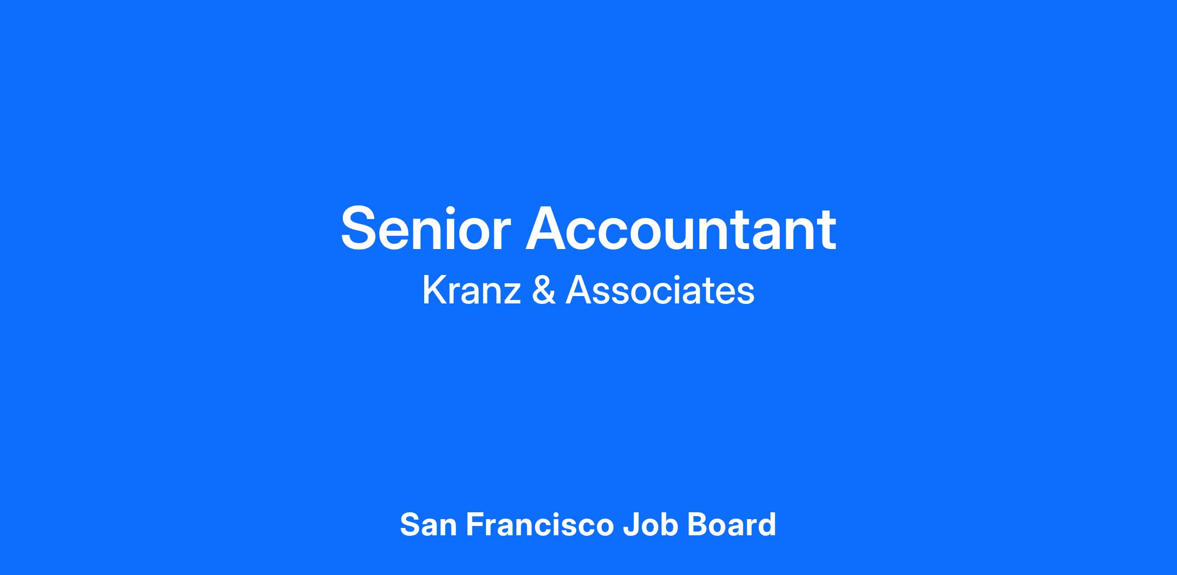 www.kranz.consulting Senior Accountant Job Description San Francisco Bay Area, CA For over two decades, Kranz Consulting has been the recognized leader in providing superior financial consulting advisory services requested by startup and emerging growth company CEO’s, Boards, CFO’s and the most prominent Venture Capital firms.