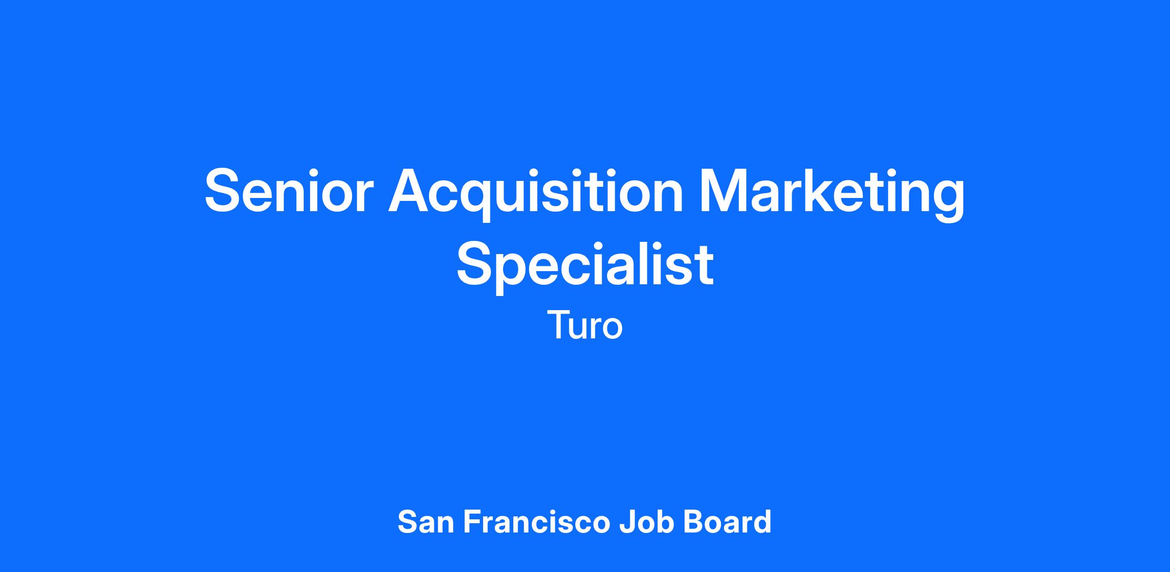 Turo is looking for a Senior Acquisition Marketing Specialist to help turbocharge its fast-growing guest community in the US. You'll be joining a hard-working, down-to-earth Marketing team that enjoys working collaboratively with many teams in the company to ensure we are strategizing, prioritizing, and optimizing on work to deliver on company goals. Whether working collaboratively with one another or other teams, it’s important for us to have strong communication, ask the right questions, and bring innovative ideas to the table. We strive every day to live up to Turo’s values of grounded, bold, expressive, and driven and hope to add someone to the team who believes in these values as much as we do!