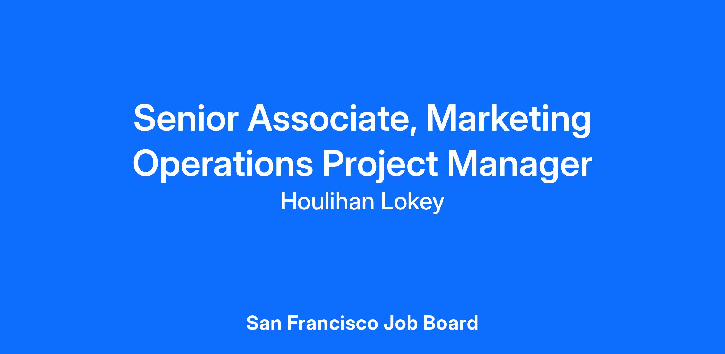 Are you a strategic thinker with a passion for marketing operations and content-driven growth? As a Senior Associate, Marketing Operations Project Manager at Houlihan Lokey, you’ll play a pivotal role in orchestrating high-impact marketing initiatives that support our global brand and sector teams.