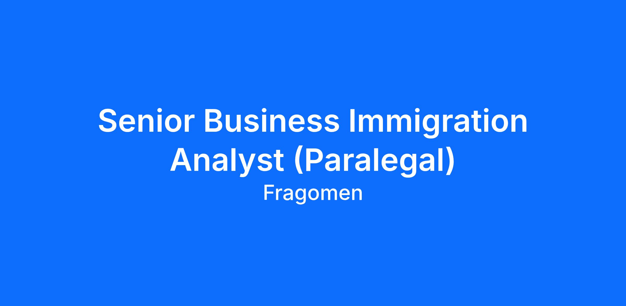 About the Role: Fragomen’s Senior Business Immigration Analyst position will provide you with the opportunity to make an immediate impact on our business, as well as offer training, development, and long-term growth opportunities. Fragomen’s exclusive focus on immigration means you will work in an exciting, dynamic, and challenging atmosphere with people who are passionate about immigration. Providing world class client service and industry leading technology solutions, Fragomen helps our clients to navigate the complex world of global immigration to better achieve their goals.