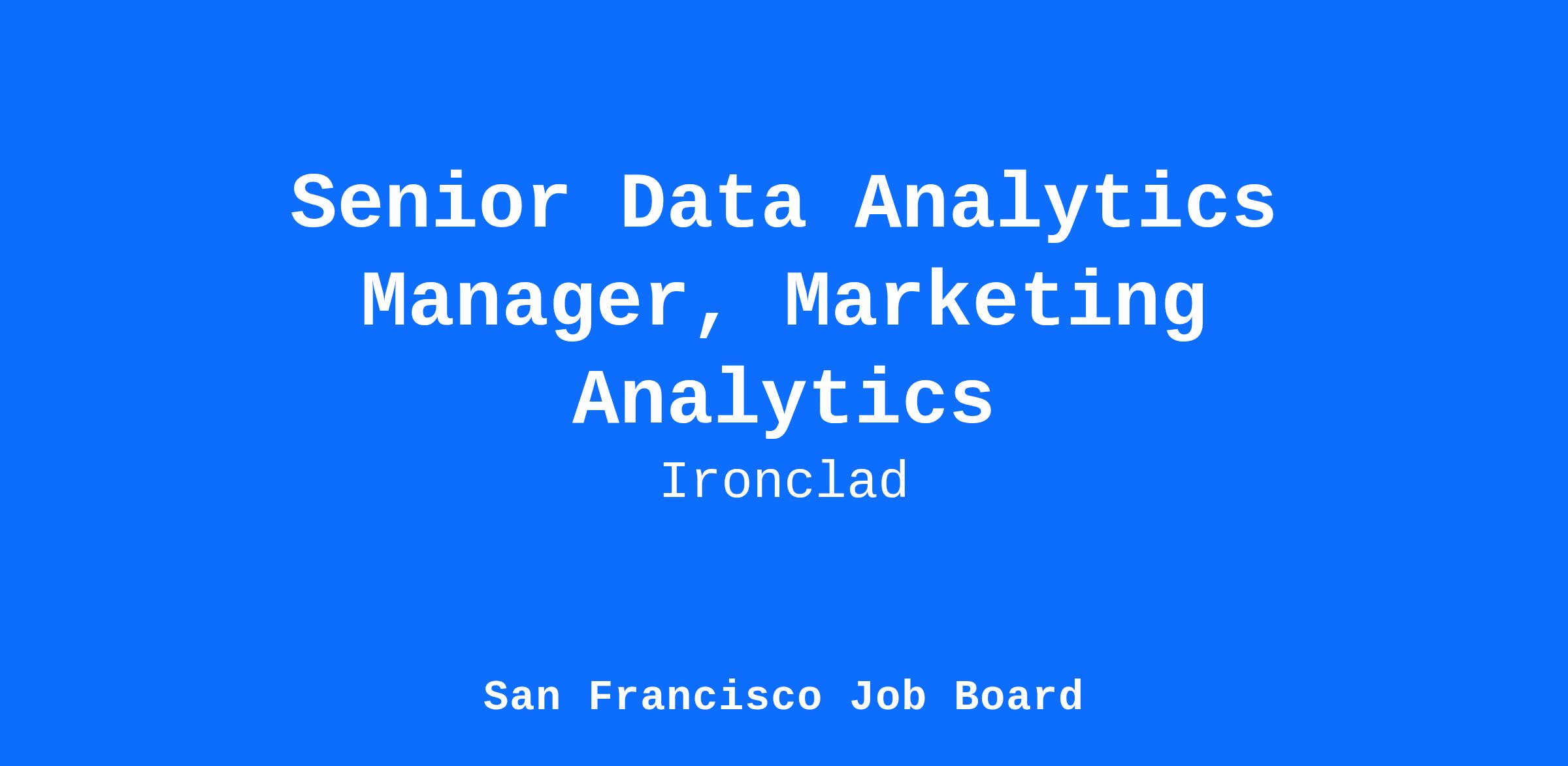 We’re looking for a Senior Data Analytics Manager, Marketing Analytics to join our growing Data & Analytics team. In this role, as an individual contributor you will partner closely with our revenue marketing leadership to uncover insights that drive pipeline generation, campaign effectiveness, and overall go-to-market performance. You’ll bring rigor and storytelling to our data, ensuring the business can make faster, smarter decisions. This role is highly cross-functional, giving you visibility and impact across business development, digital marketing, and events. It’s an opportunity to shape how Ironclad understands its top-of-funnel engine in a high-growth environment.
