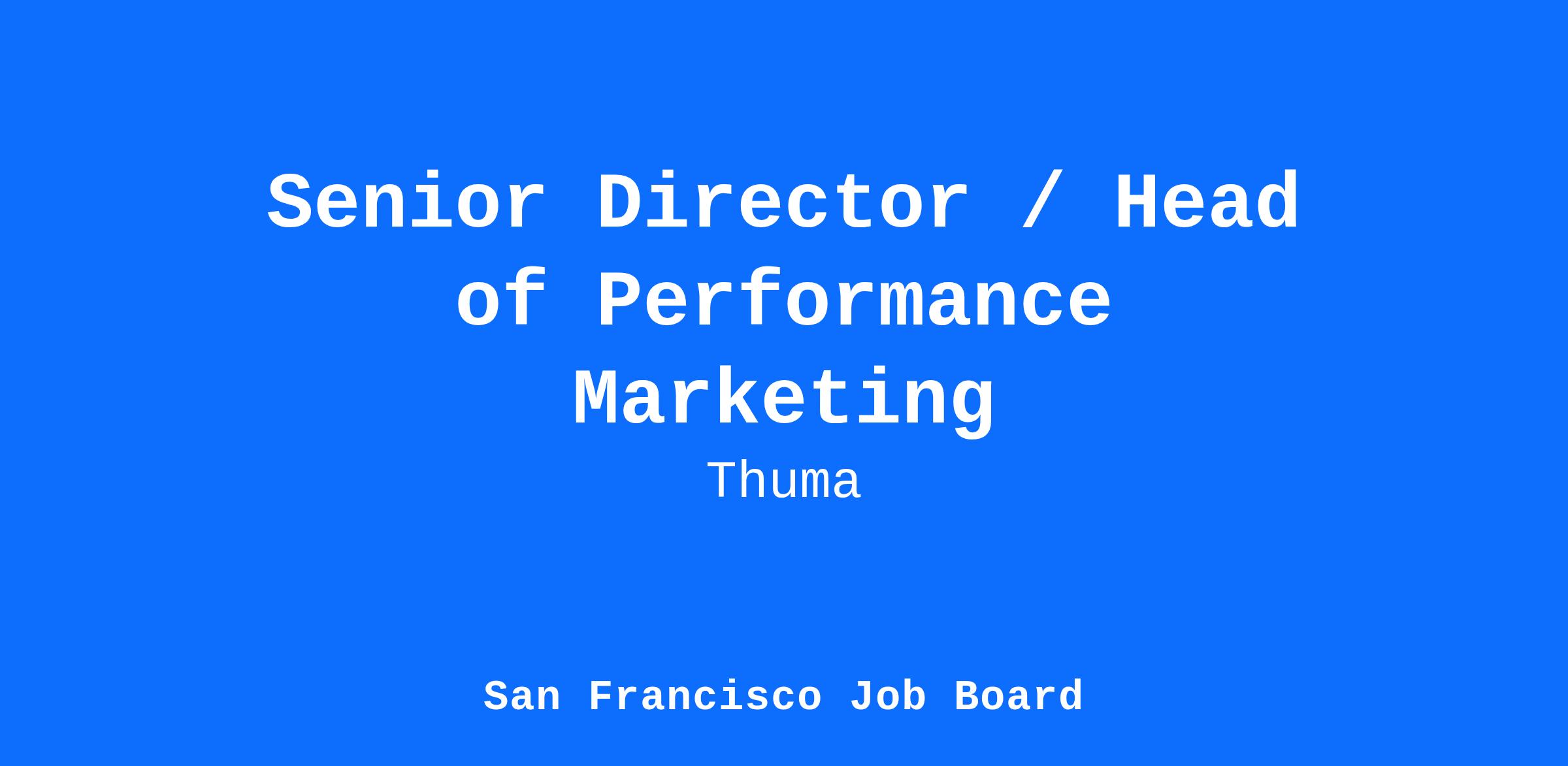 Thuma is seeking an analytically driven Senior Director or Head of Performance Marketing to accelerate growth as we expand product categories and continue to scale rapidly. This leader will elevate paid media, lifecycle, marketing analytics, and experimentation capabilities to unlock sustainable new customer and retention growth.