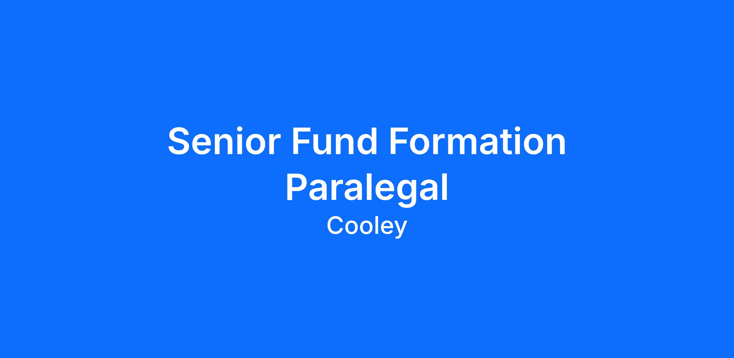 Cooley is seeking a Fund Formation Senior Paralegal.