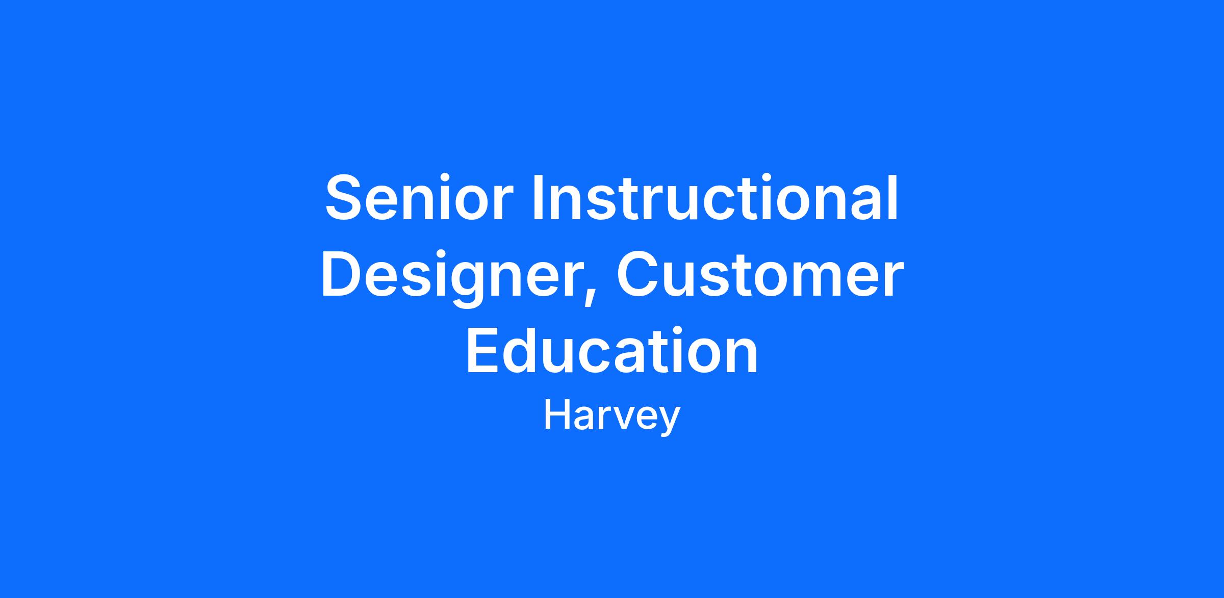 Harvey is looking for a Senior Instructional Designer to join our Customer Education team. Reporting to our Lead Customer Education Strategist, you will design and build the educational content and courses that power Harvey Academy — our customer-facing learning platform. You will own development of courses, videos, interactive modules, and written resources from concept through delivery, applying adult learning principles and deep instructional design expertise to make Harvey’s AI-powered platform accessible to diverse customer audiences. This is an ideal role for an experienced instructional designer who combines creative problem-solving with strong production skills and is passionate about crafting exceptional educational experiences.