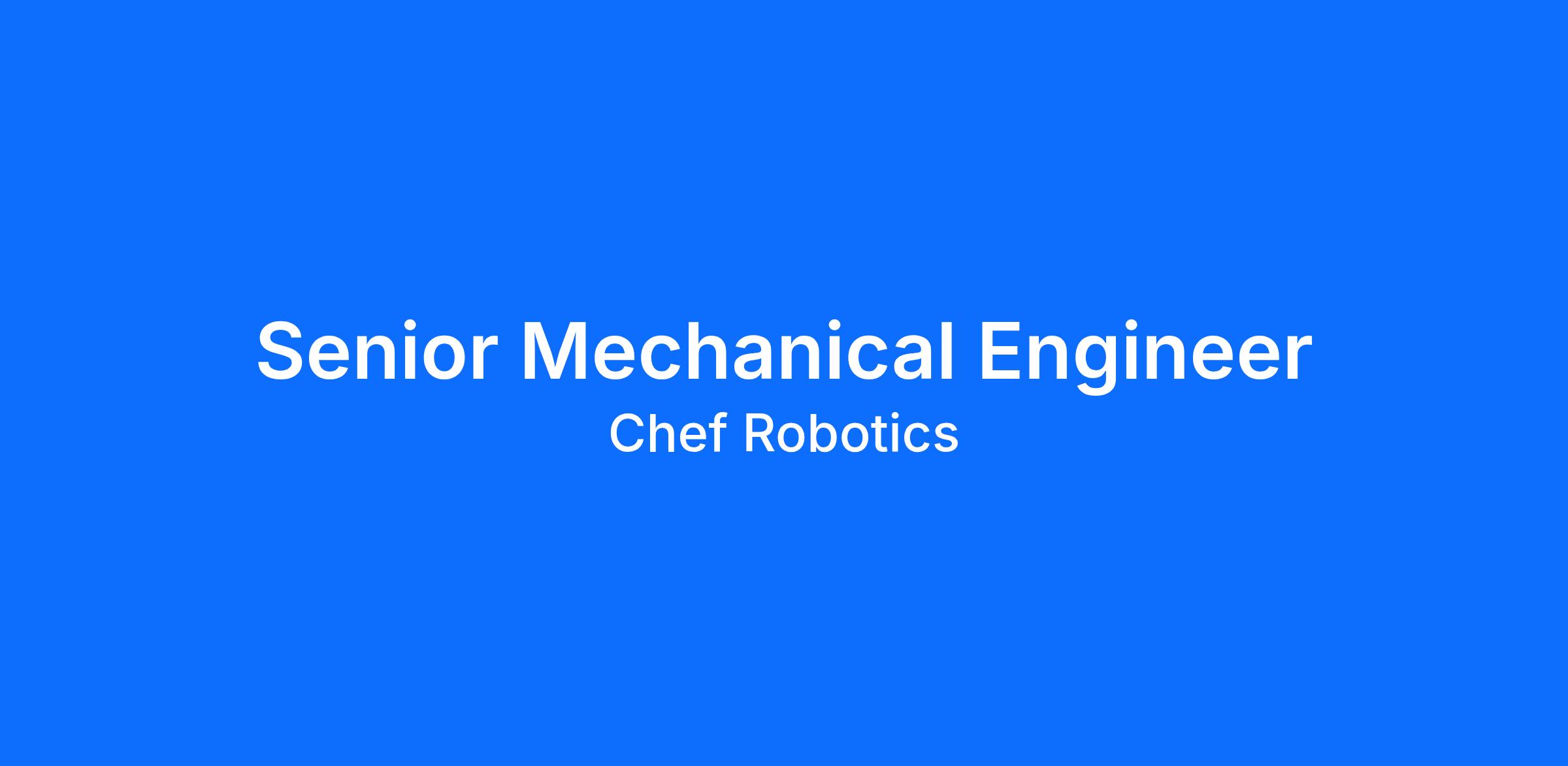 Robots are transforming how the world makes food — and you'll be building the hands that do it. As a Senior Mechanical Engineer at Chef, you'll design and ship the mechatronic components that power our robotic systems, from clever end effectors to full manipulation systems.